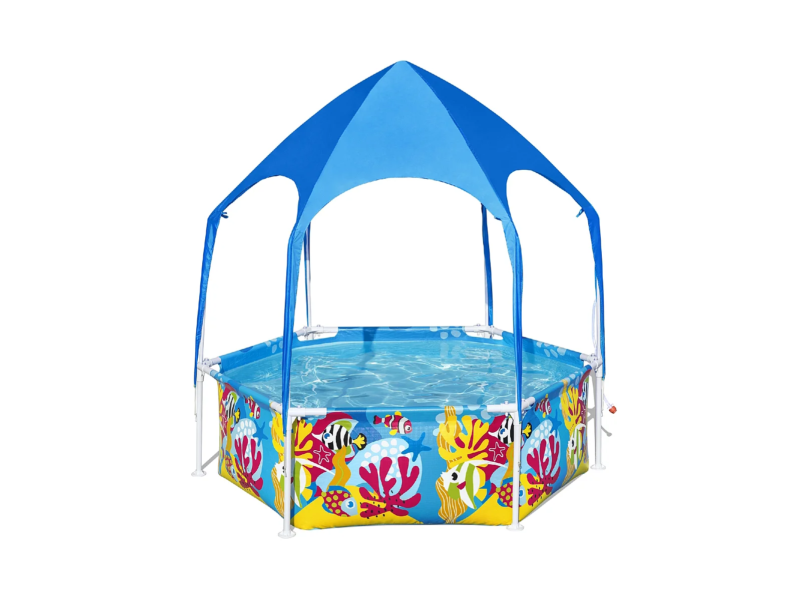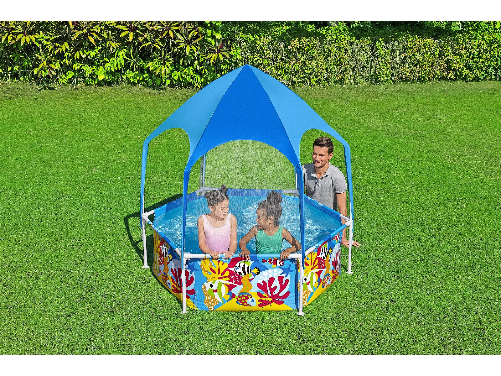 Piscine Démontable pour Enfants Bestway Splash in Shade 183x51 cm Auvent avec Protection Solaire FPU 40+ Bleu Design Fond Marin