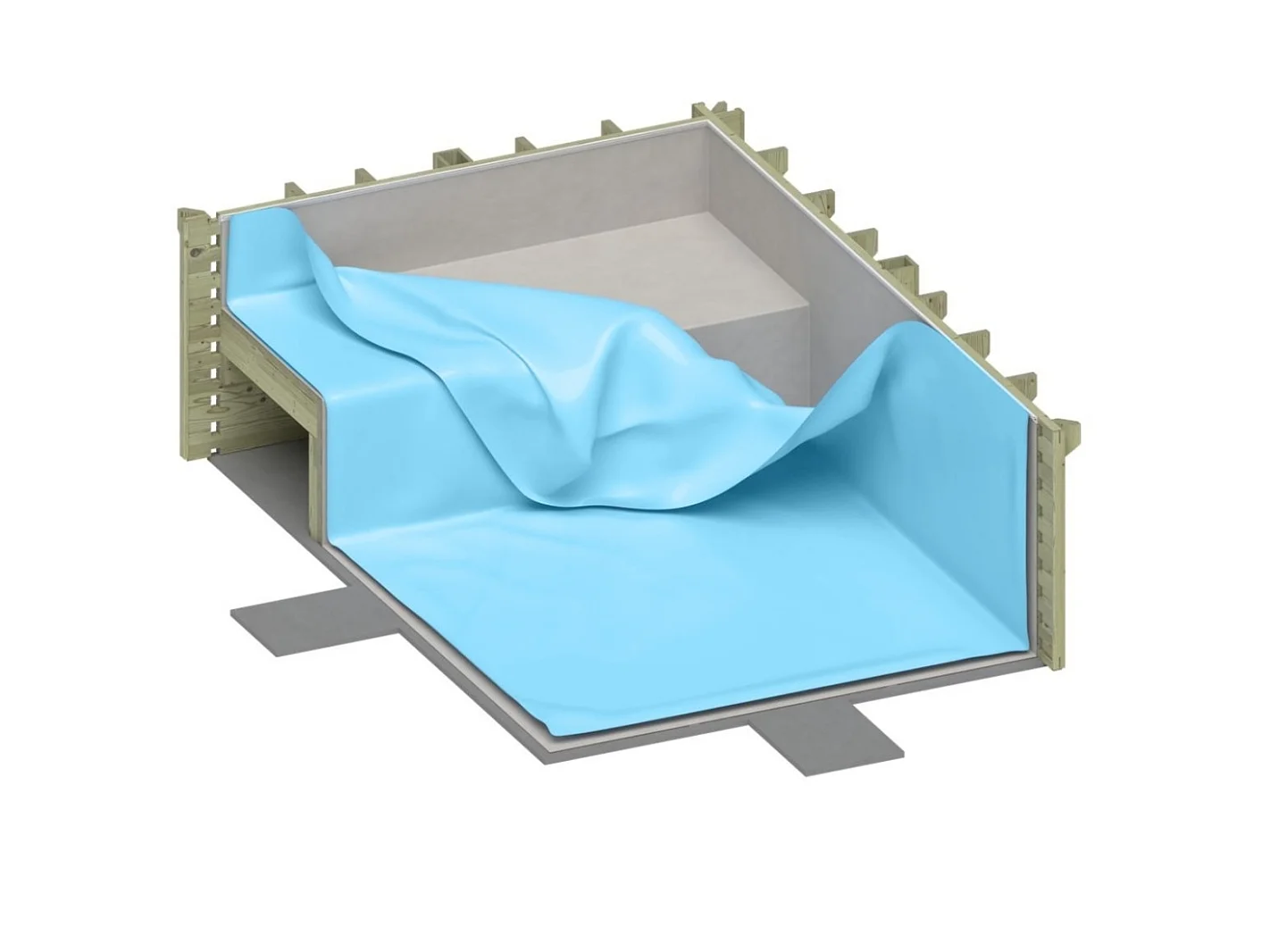 Piscine en bois AQUA 6.1 x 2.85 - H.1.31 m avec plage, bleu pâle, fixations à sceller - BAS7307OSPI+PLA307 - ALTANKA
