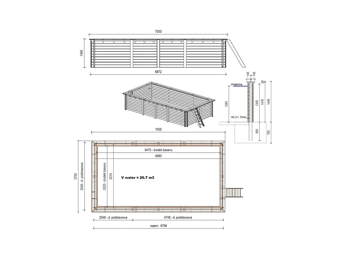 Piscine en bois Aqua 7x3.75 - H.1.45 m fixations à visser - BAS7308OSPL+SZA - ALTANKA