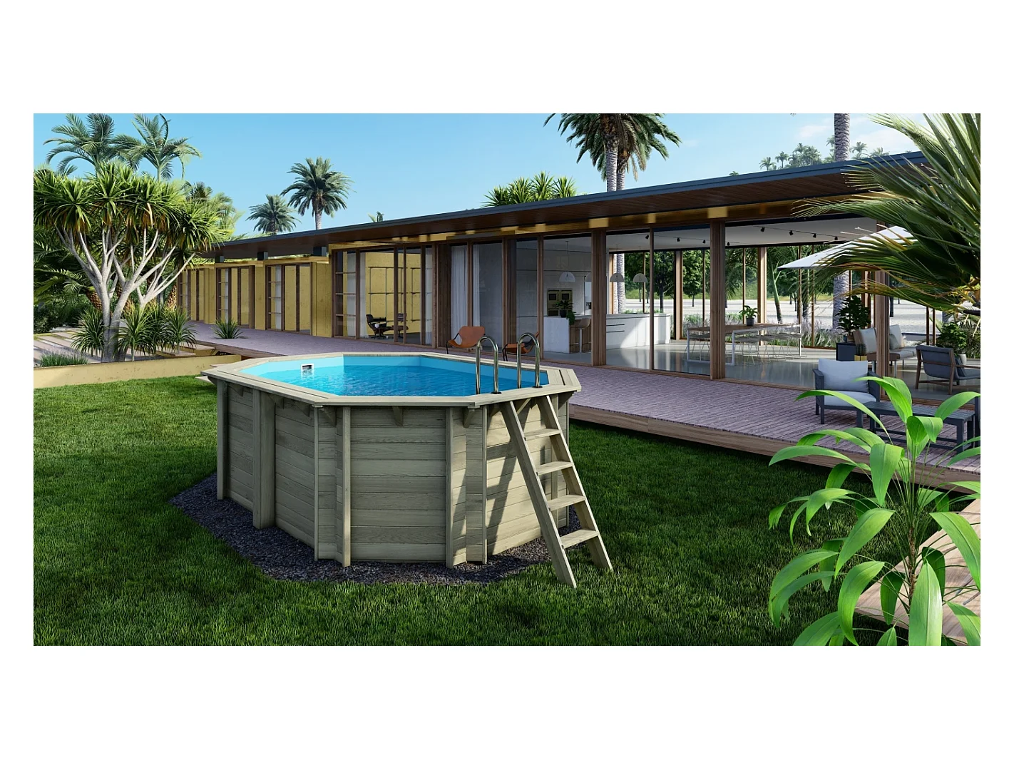 Piscine en bois Nemo 4.3x3 - H.1.31 m cadre en métal, sans dalle béton - BAS7303OSPU - ALTANKA
