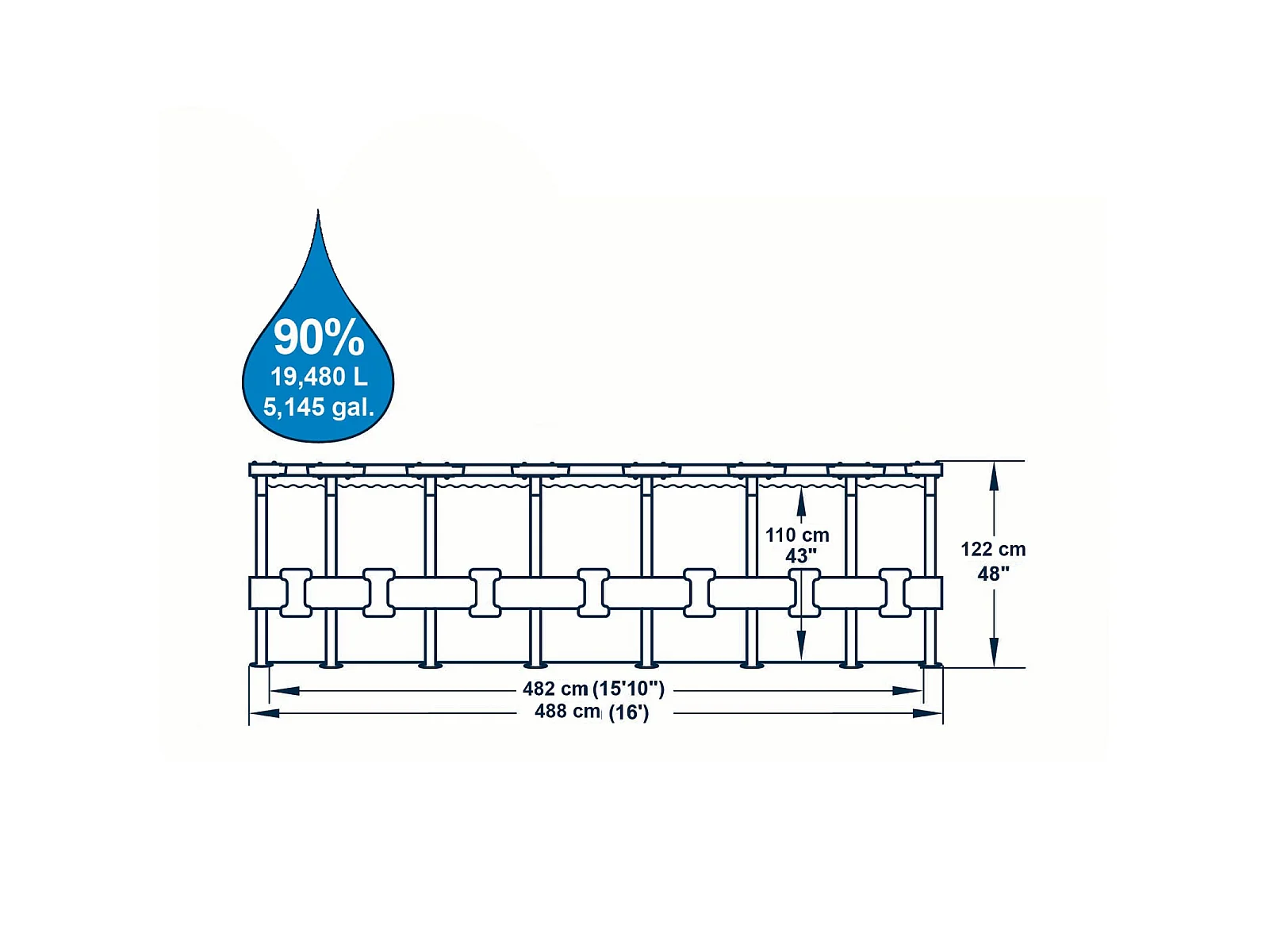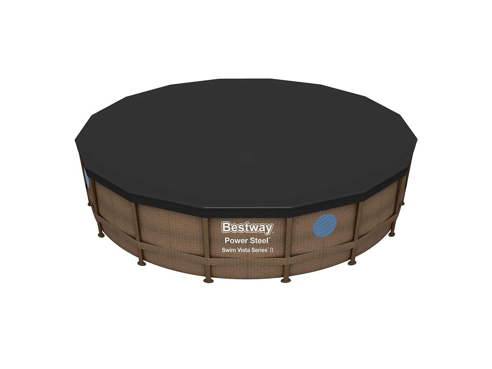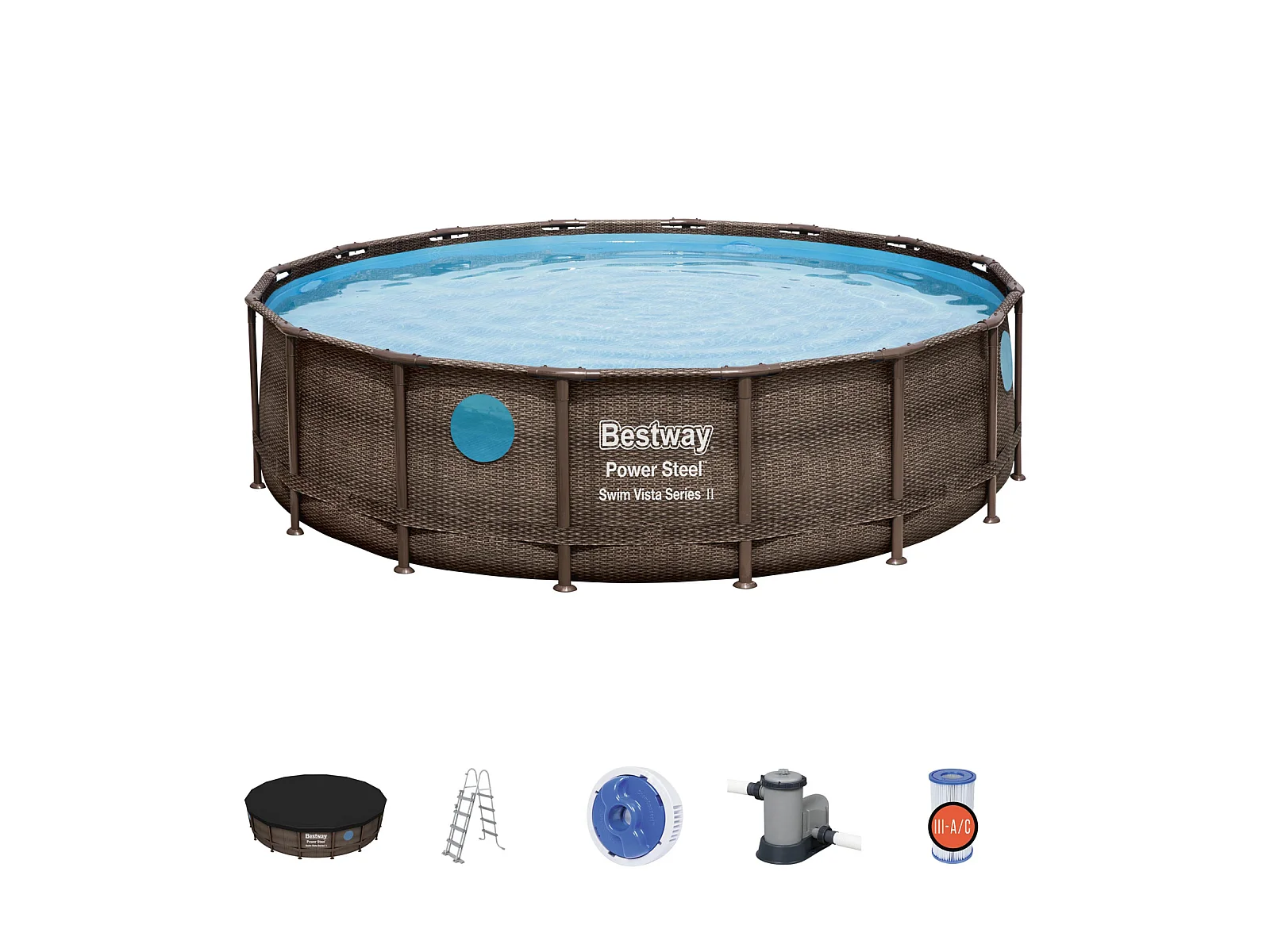 Piscine Hors-sol Tubulaire Bestway Power Steel Imitation Rotin 488x122 cm Épurateur à Cartouche 5.678 L/H Bâche, Échelle