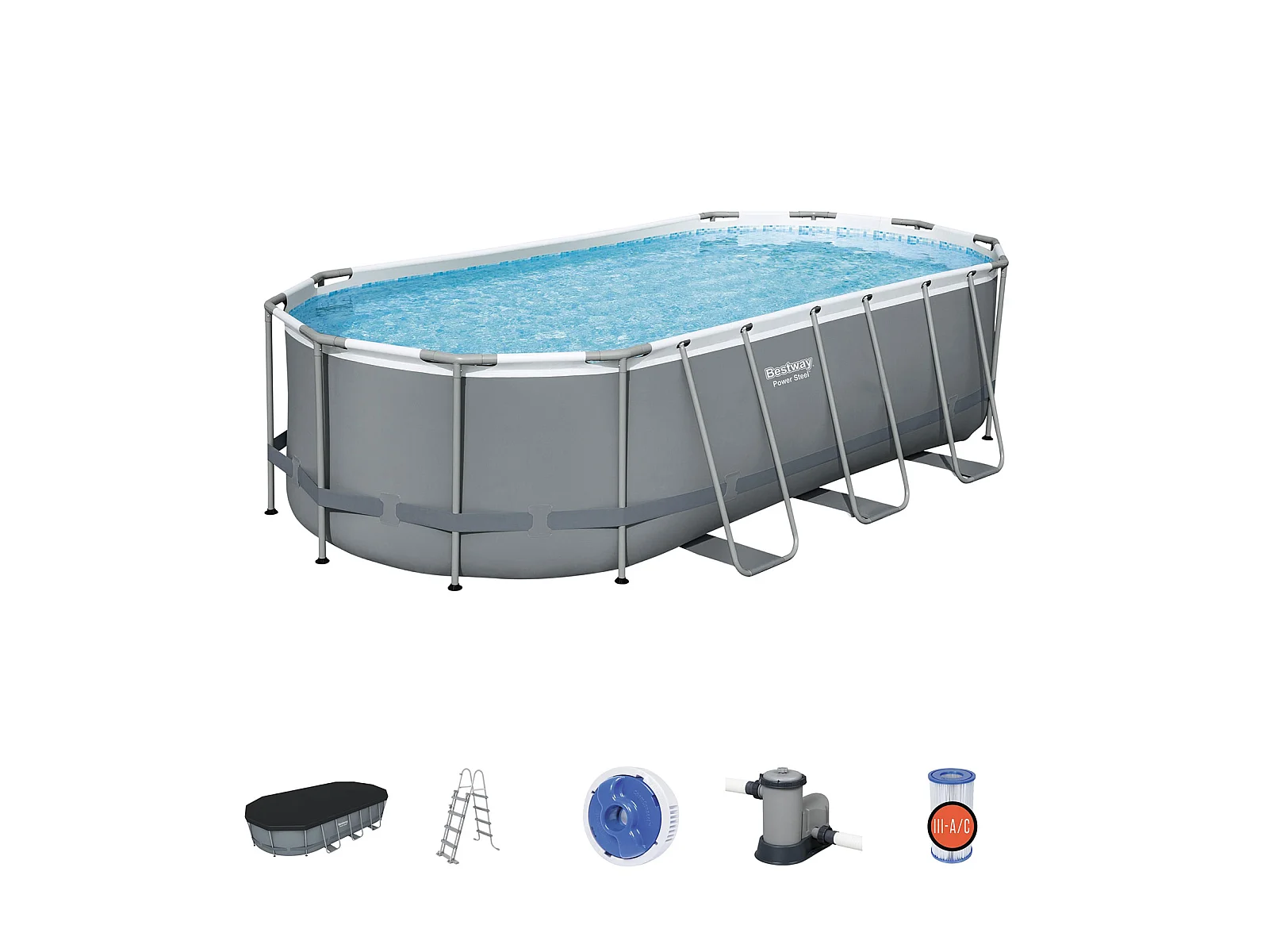 Piscine Hors-sol Tubulaire Bestway Power Steel Ovale 549x274x122 cm Épurateur à Cartouche de 5 678 L/H Bâche et Échelle