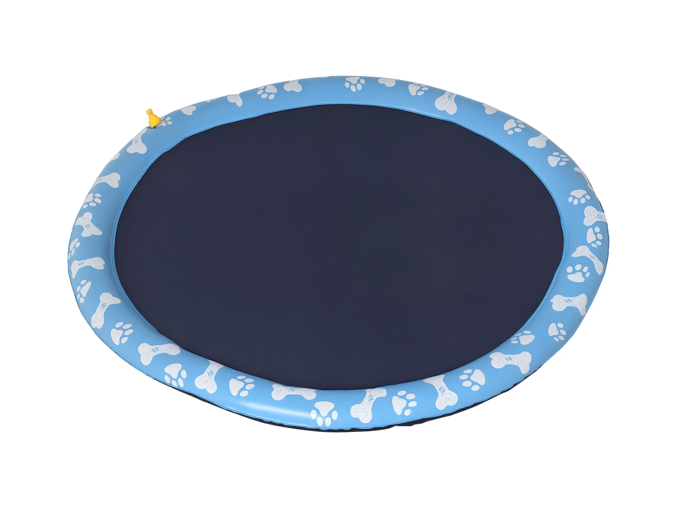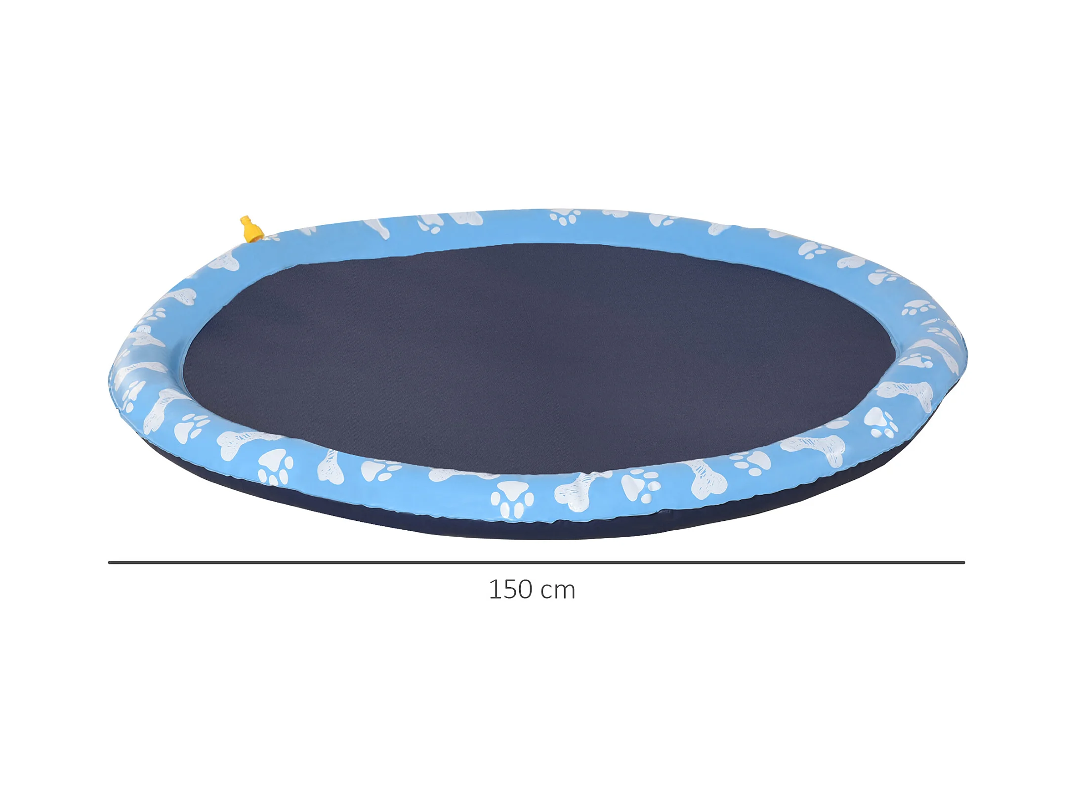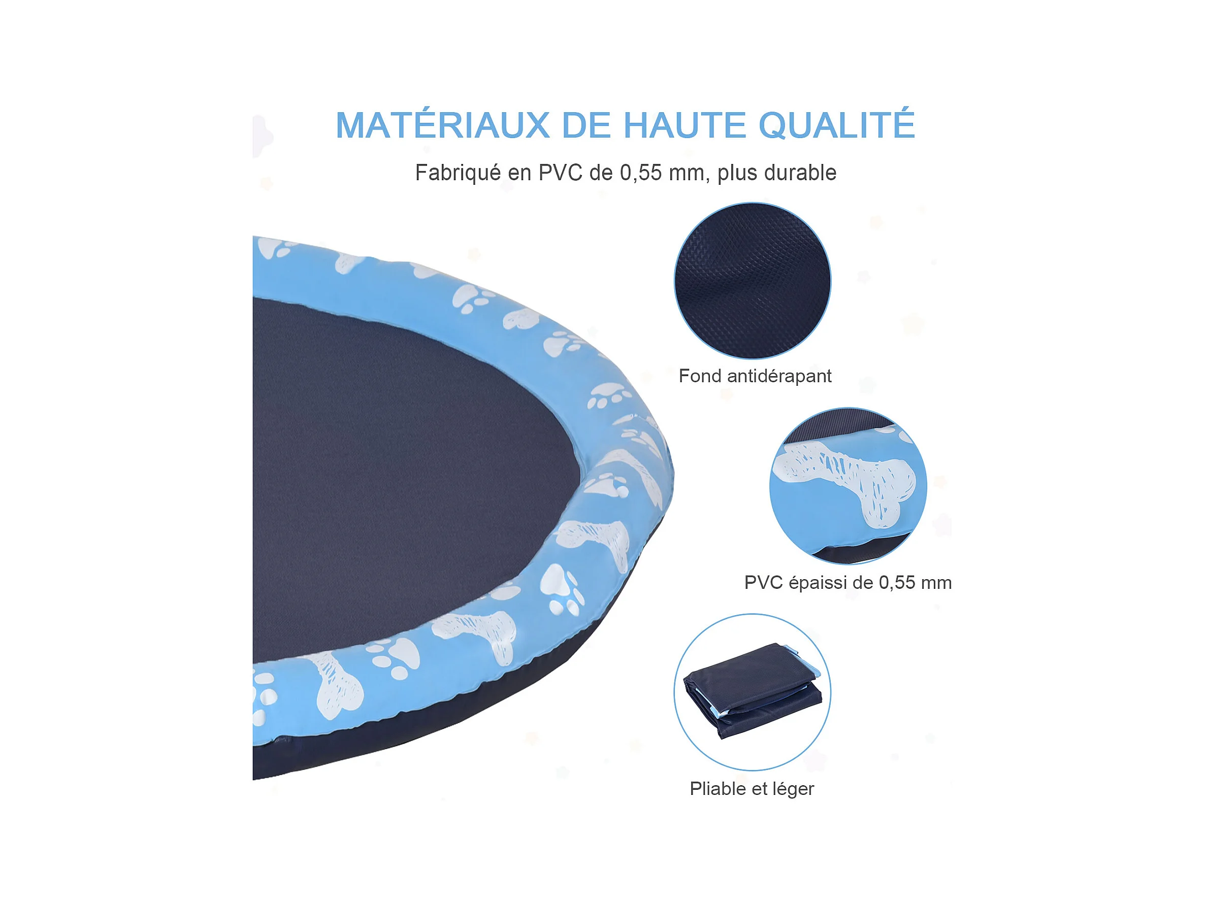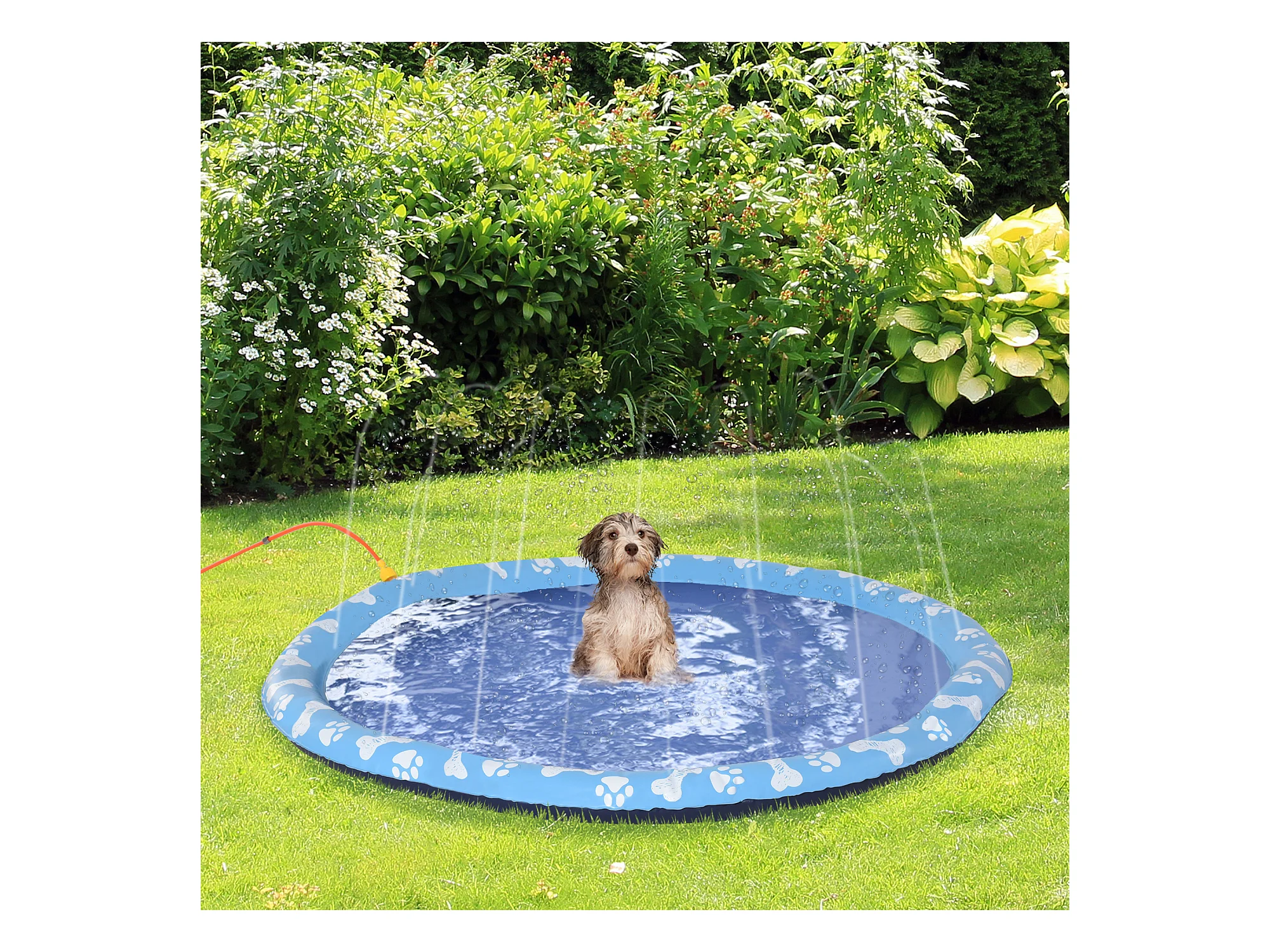 Piscine tapis à jet d'eau pour chien - Ø 1,5 m - pliable, facile à transporter - PVC bleu motifs os pattes