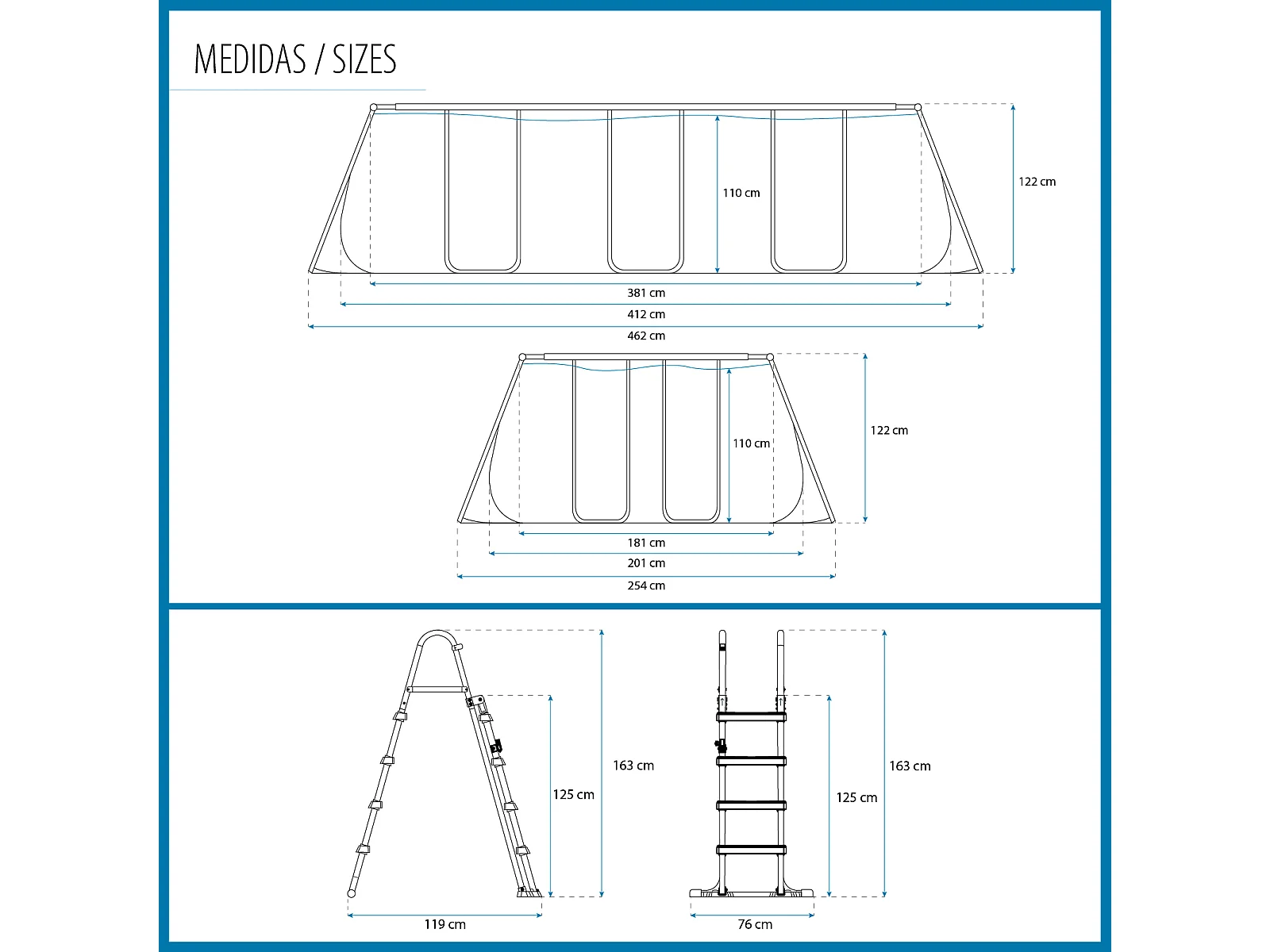 Piscine Tubulaire Rectangulaire Bestway Power Steel 412x201x122cm Filtre à Cartouche Échelle et Distributeur de Produits