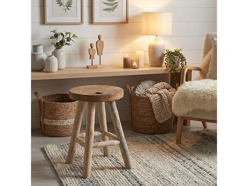 PIT-Tabouret en teck massif recyclé ø30 cm