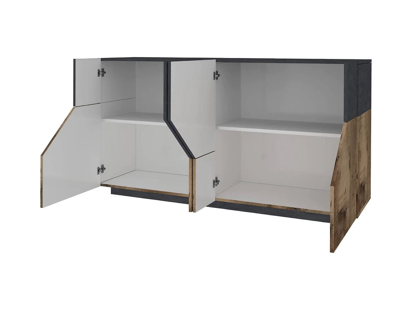 Buffet Dasllan, Buffet de cuisine avec 4 portes géométriques, Buffet de salon, Buffet de cuisine, 100% Made in Italy, 159x43h86 cm, Ardoise et Érable
