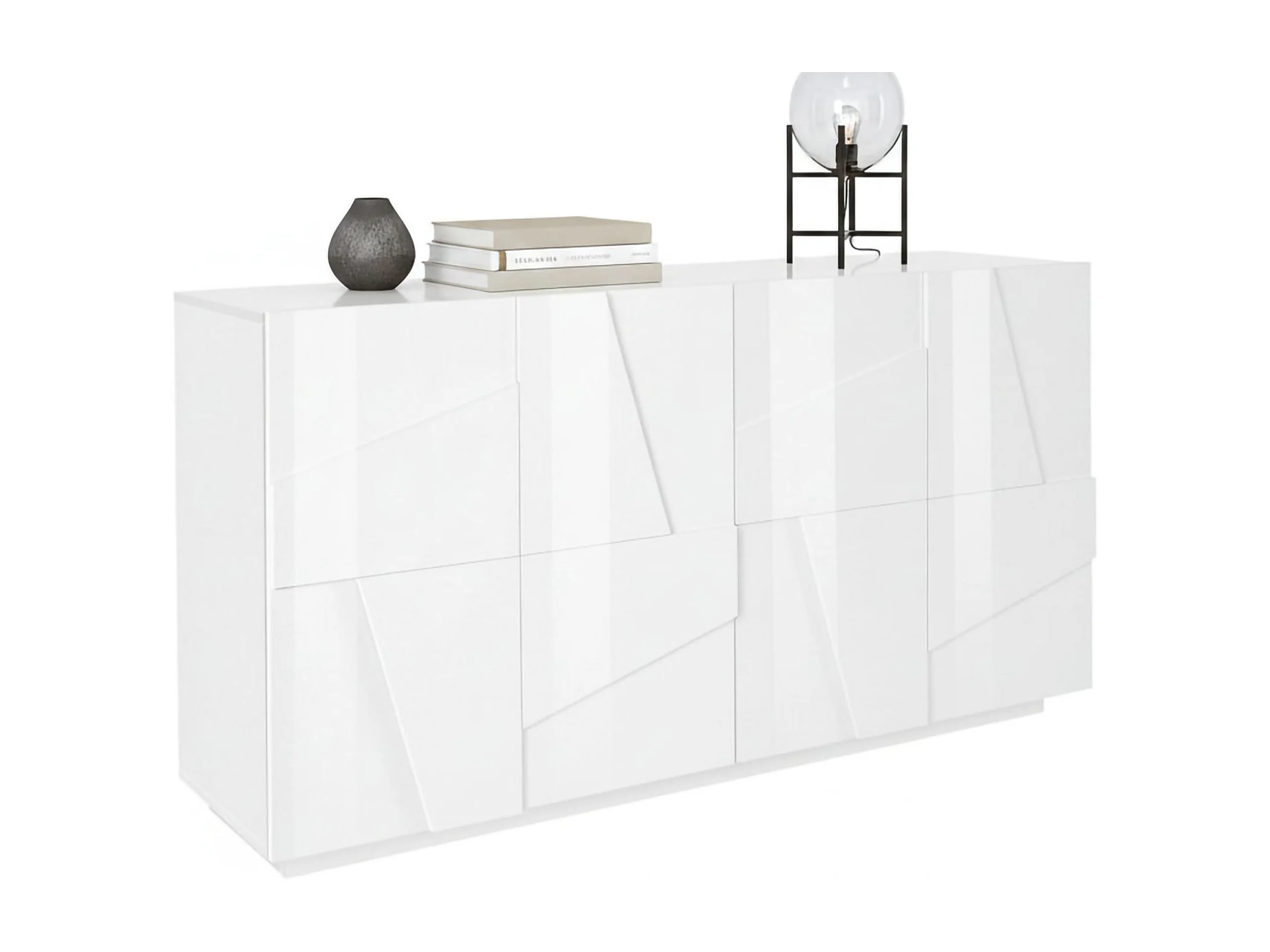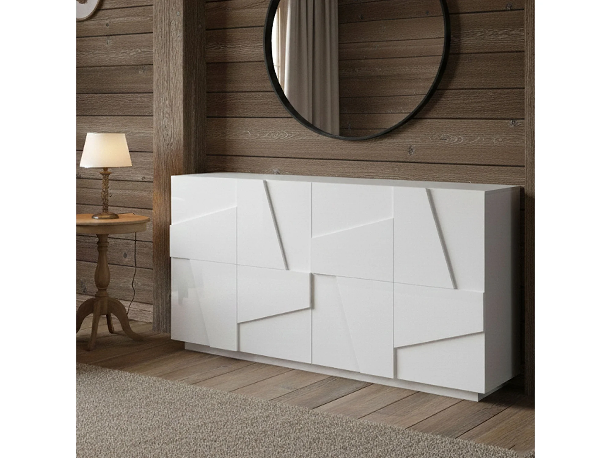 Buffet Dlanzar, Buffet de cuisine 4 portes, Buffet de salon, 100% Made in Italy, 162x44h86 cm, Blanc brillant