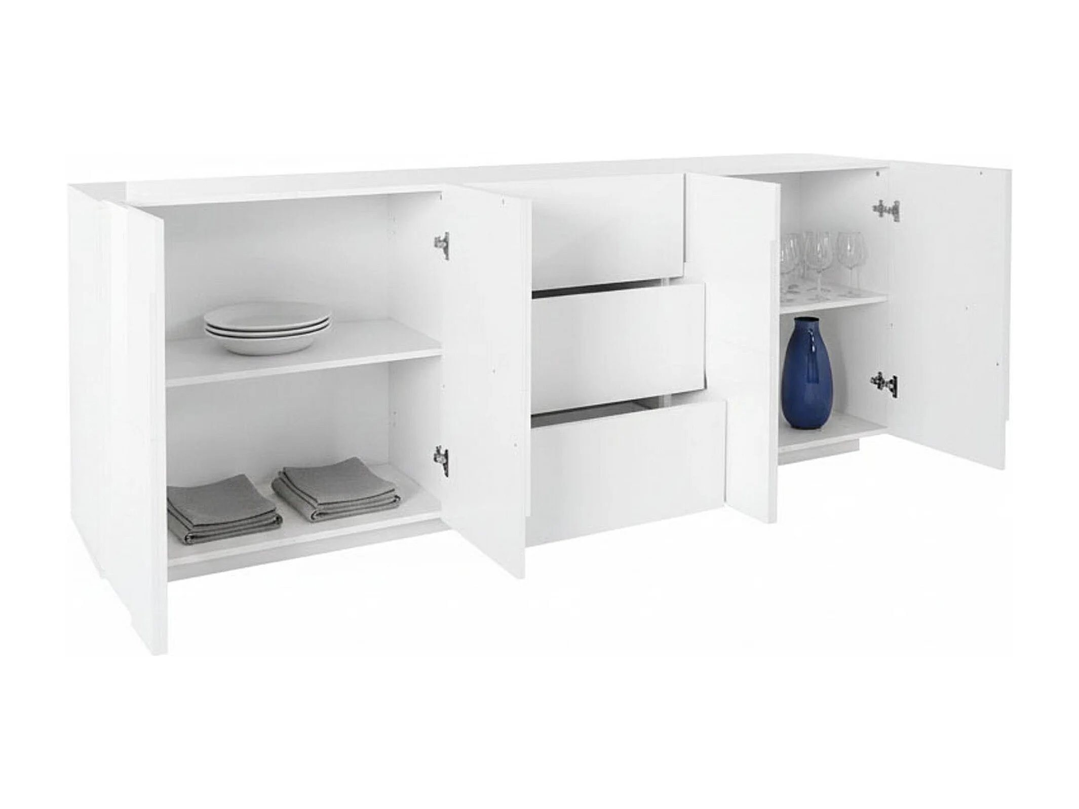 Buffet Mason, Buffet de cuisine avec 4 portes et 3 tiroirs, Buffet de salon, 100% Made in Italy, 224x44h86 cm, Blanc brillant