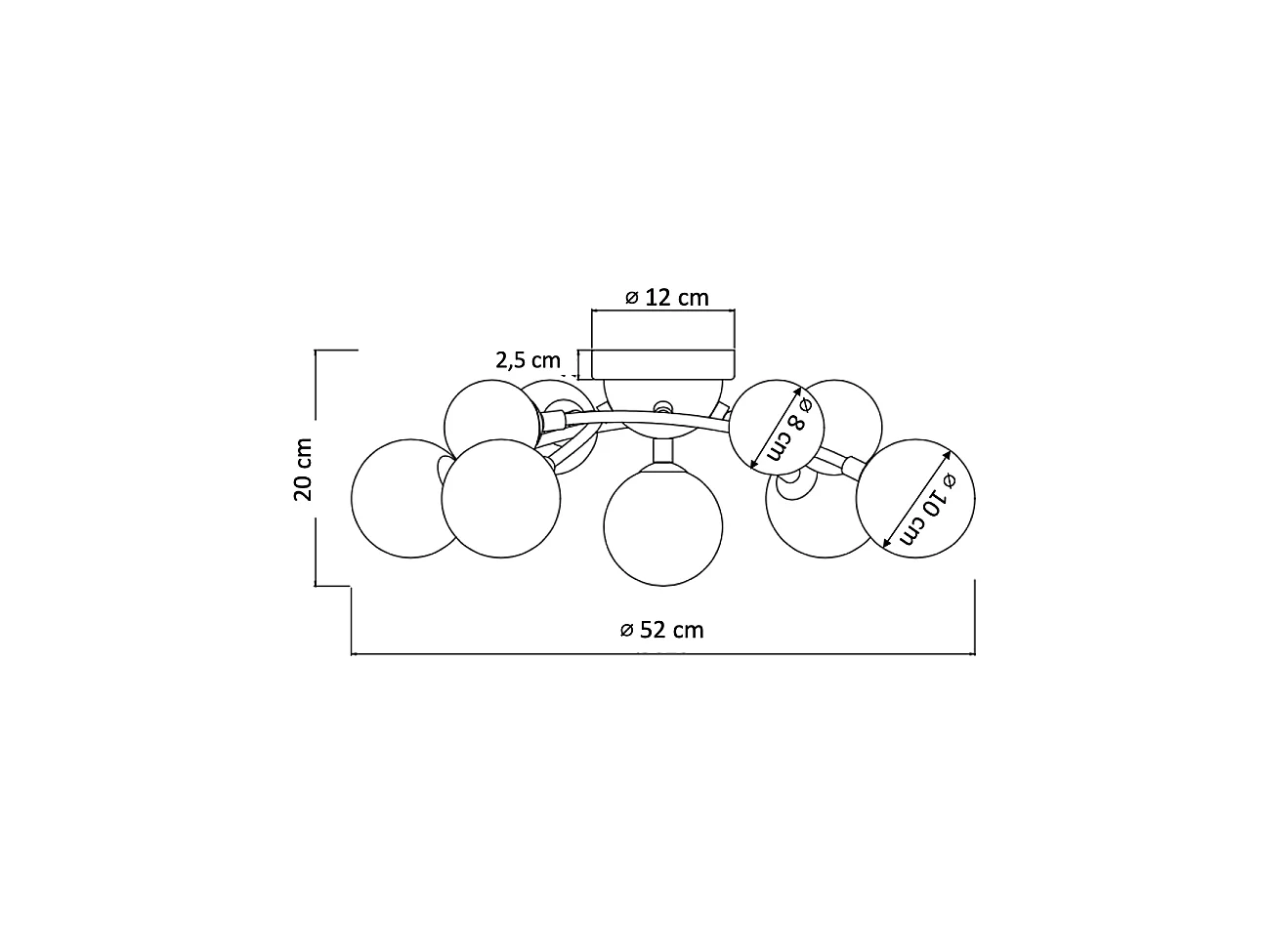 Plafonnier à bras courbés design noir 9 verres blancs - Azoria