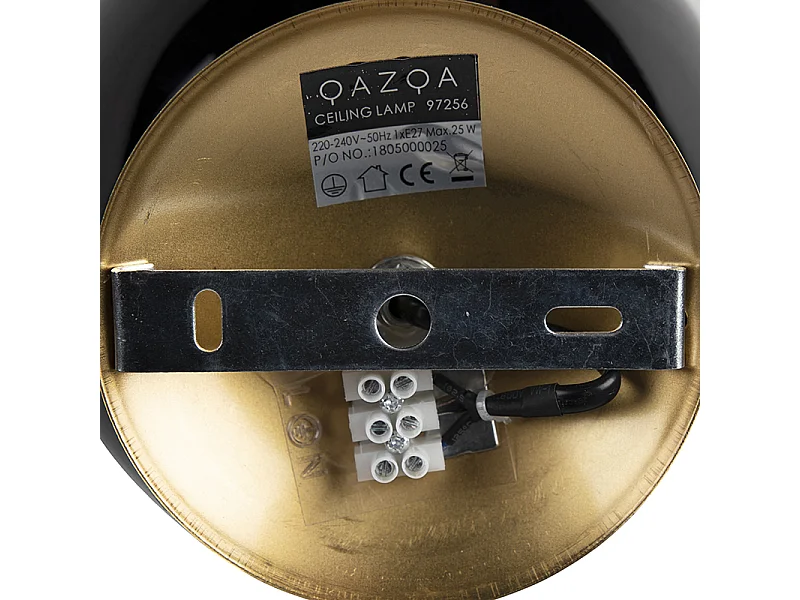 Plafonnier Art Déco en laiton avec verre noir - Pallon