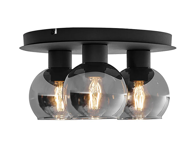 Plafonnier Art Déco noir avec verre fumé 3 lumières - Laura
