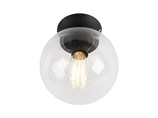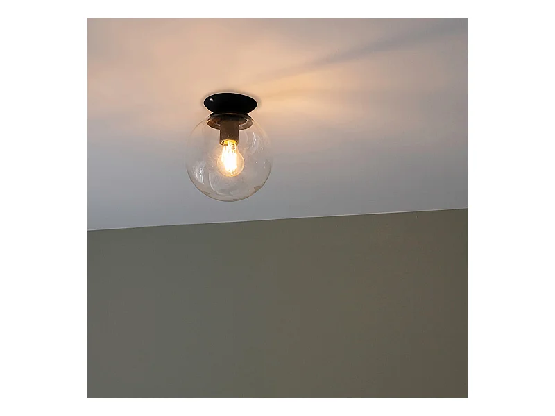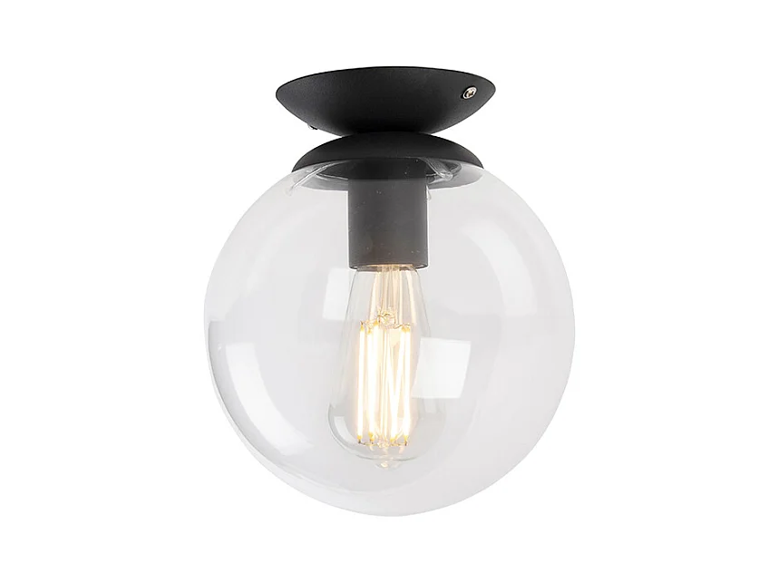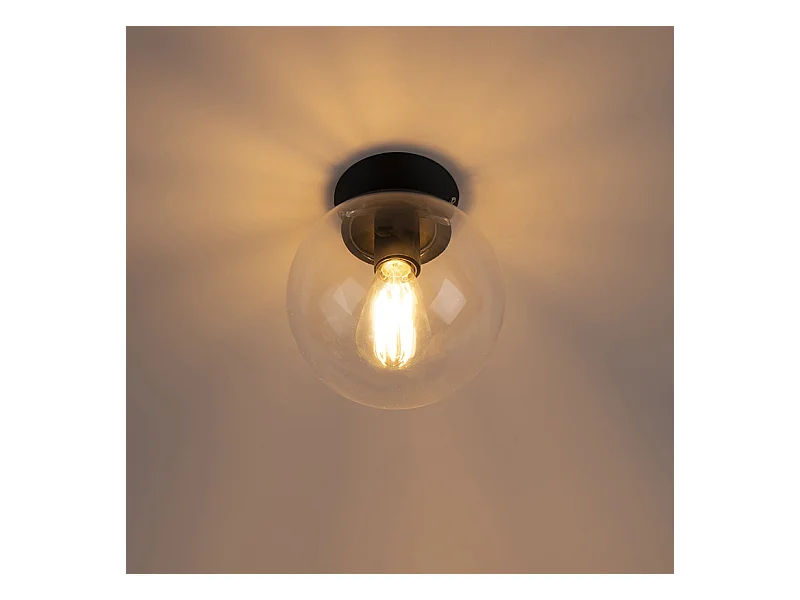 Plafonnier Art Déco noir avec verre transparent - Pallon