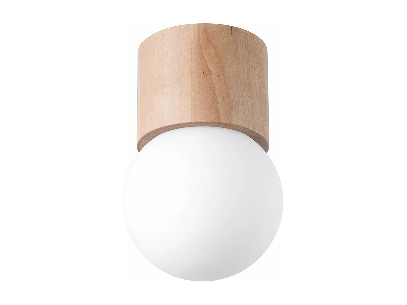 Plafonnier Solis Minimaliste En Bois/Verre - 1 Sources Lumineuses - L.12 X H.19 Cm - Bois Naturel/Blanc