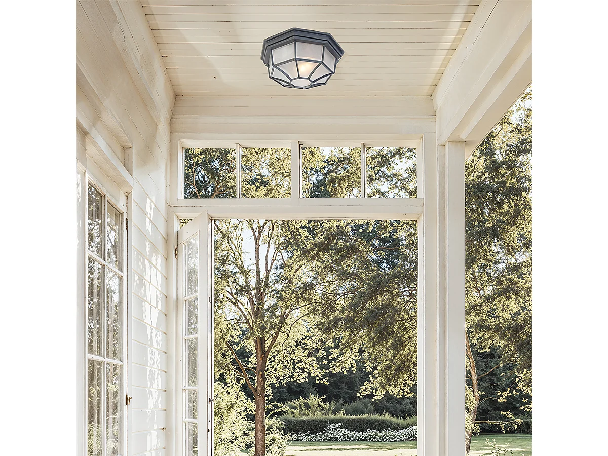 Plafonnier d'extérieur rustique noir avec verre IP44 - Elza