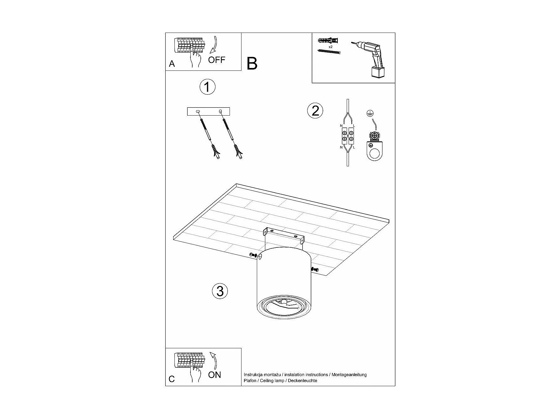 Sollux Lighting Riza Plafonnier encastré gris béton, 33 cm