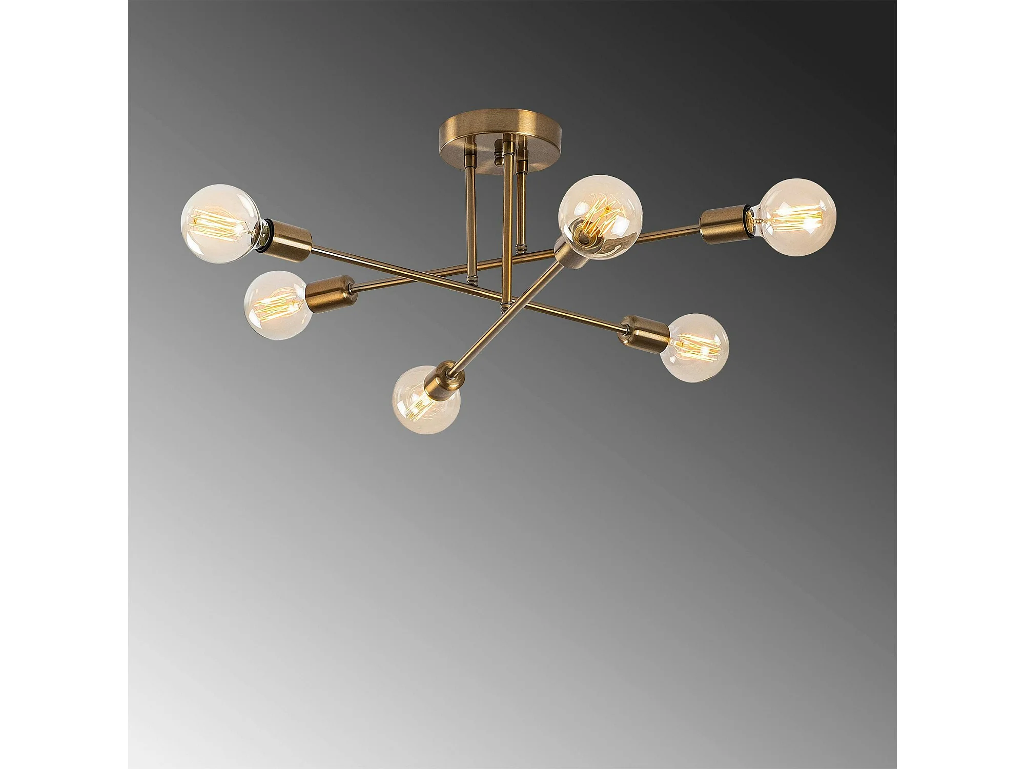Plafonnier design doré, 6 lampes sur tiges MARATEA