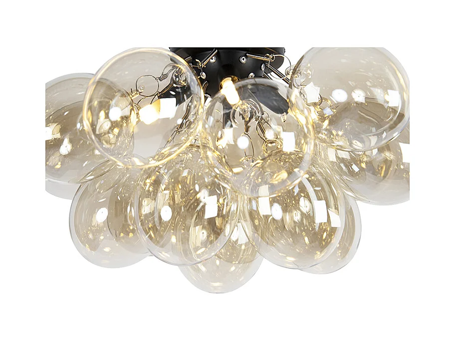 Plafonnier design noir avec verre ambre 6 lampes - Uvas