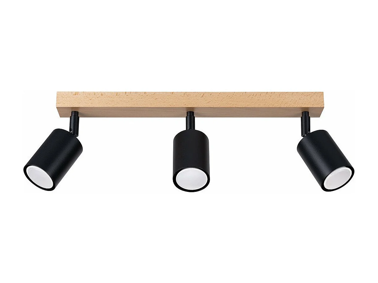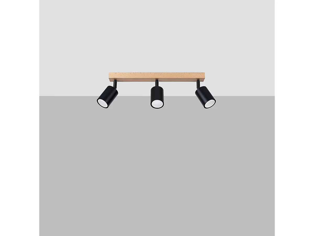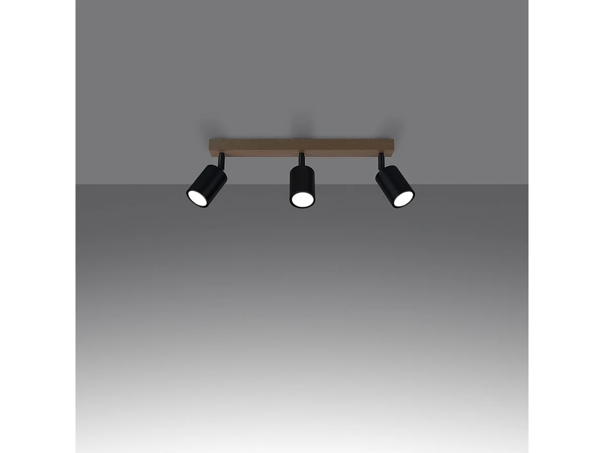 Sollux Lighting Keke Barre de spots de plafond carrée en chêne, bois, 3x GU10