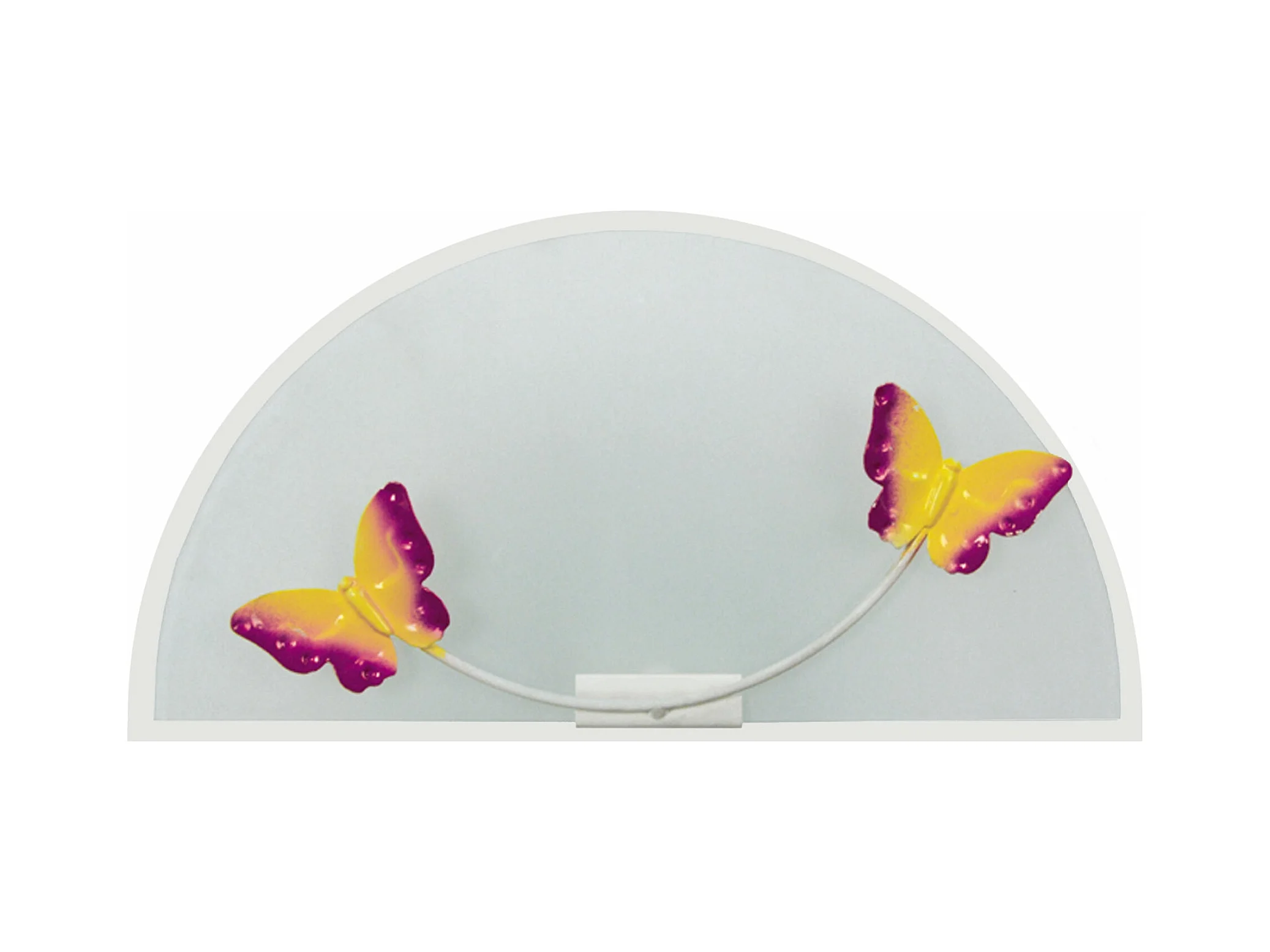 Plafonnier enfant verre plat métal papillon jaune violet 30 cm..