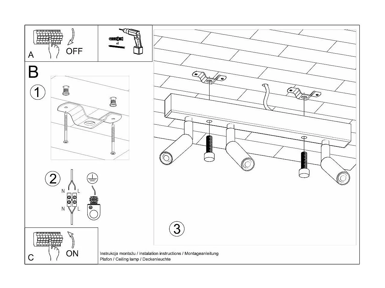 Plafonnier Karbon Minimaliste En Aluminium - 3 Sources Lumineuses - L.45 X H.16,5 Cm - Noir