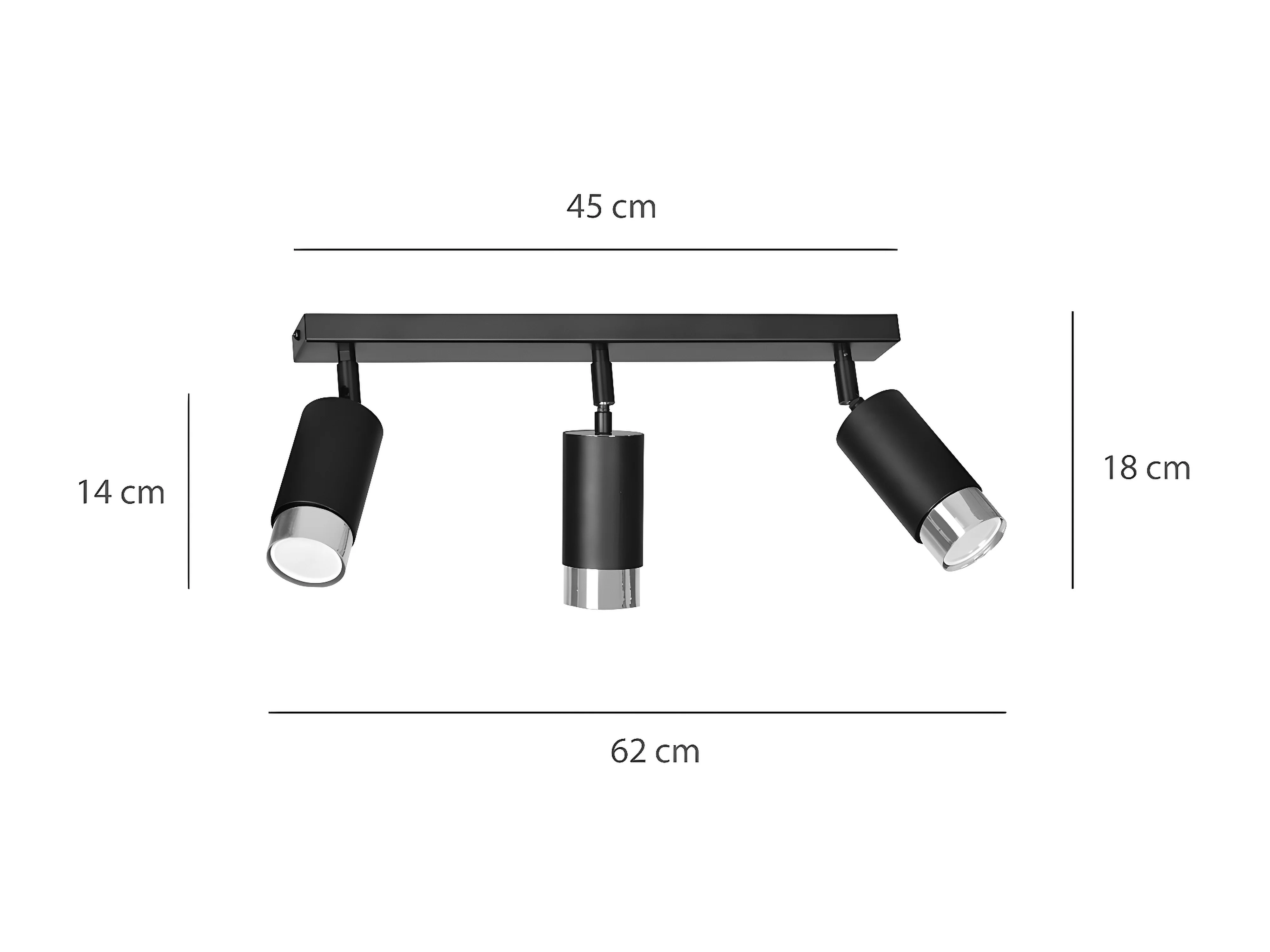 Plafonnier Hiro 10, Noir, 45x19x6 cm, Seven Design