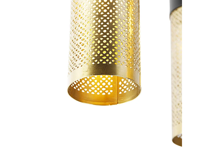 Plafonnier industriel noir avec or oblong 3 lumières - Raspi