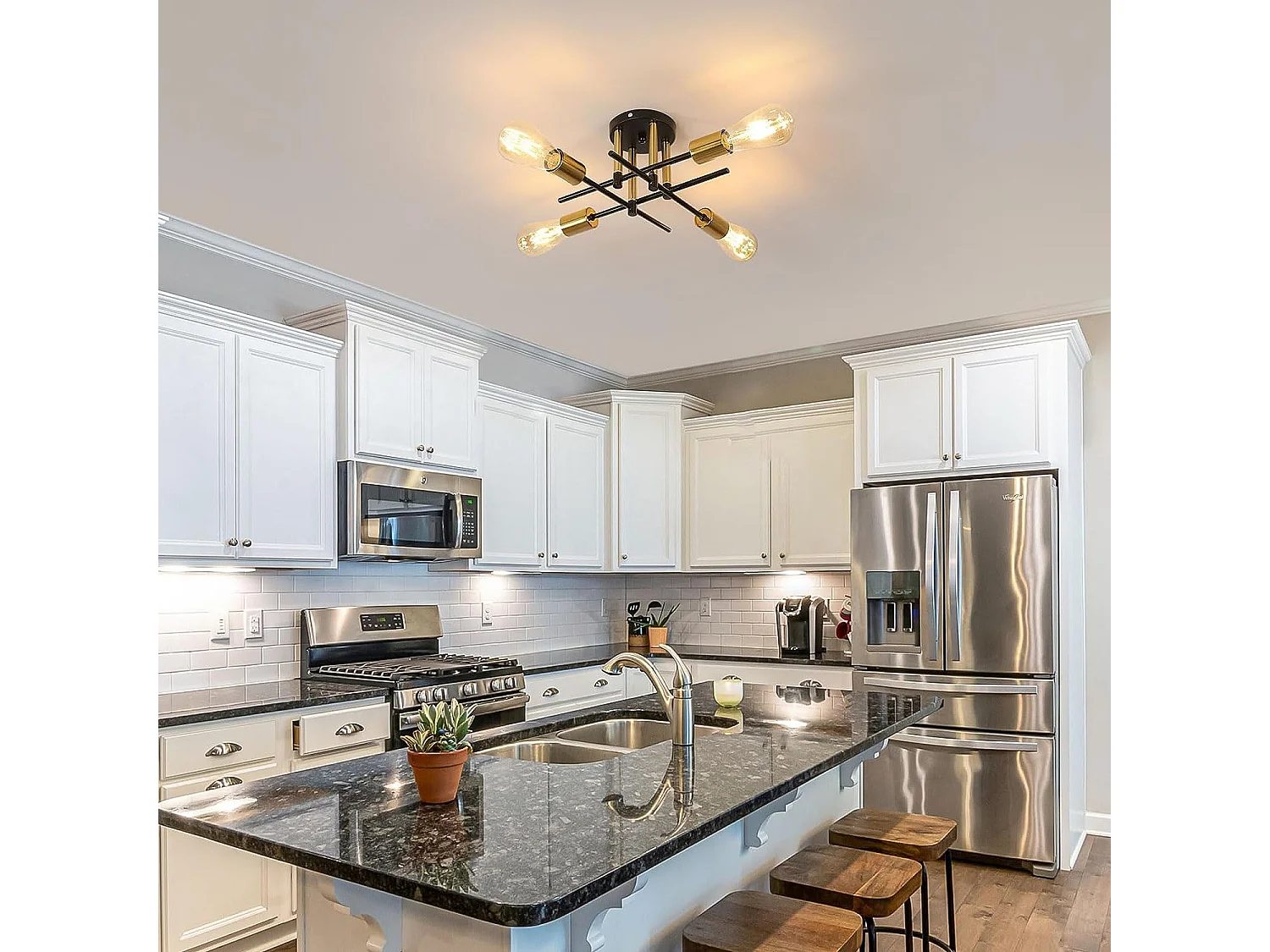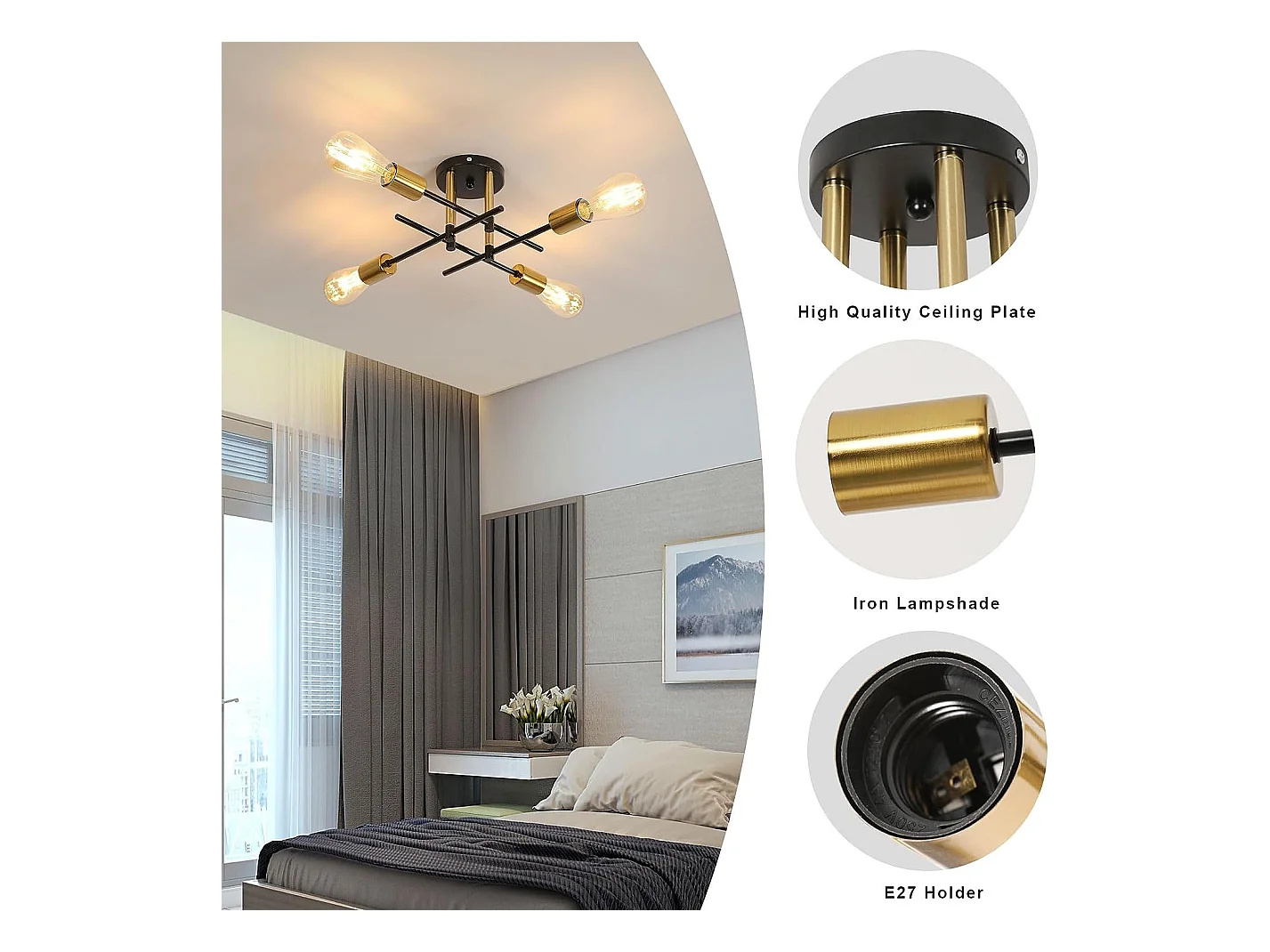 Plafonnier vintage E27 base, noir or, 37.5*7*13.5cm, pour salon chambre, sans ampoules