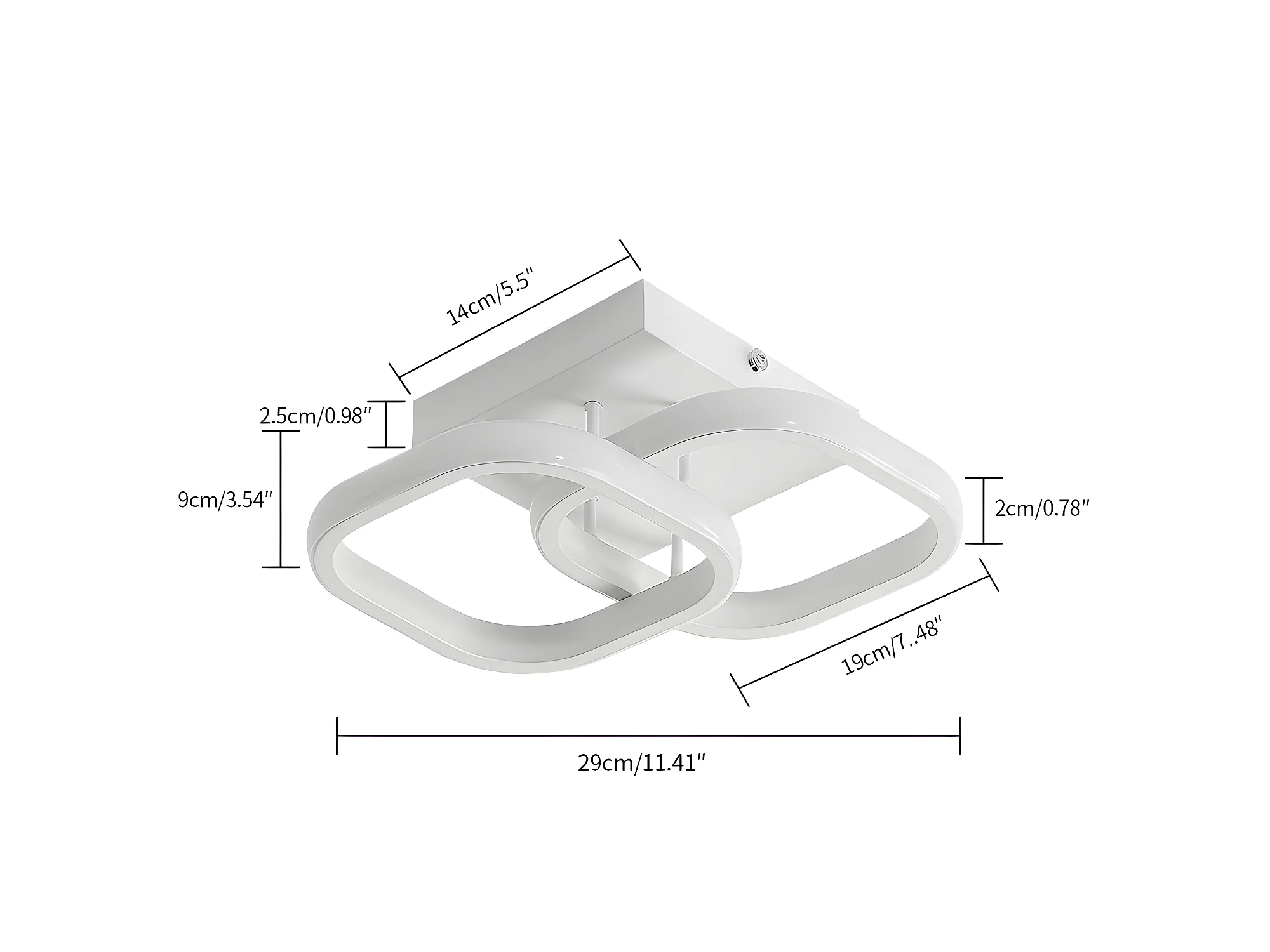 Plafonnier led 22w design moderne cercle carré, 24*24*9.5cm pour cuisine salle à mange