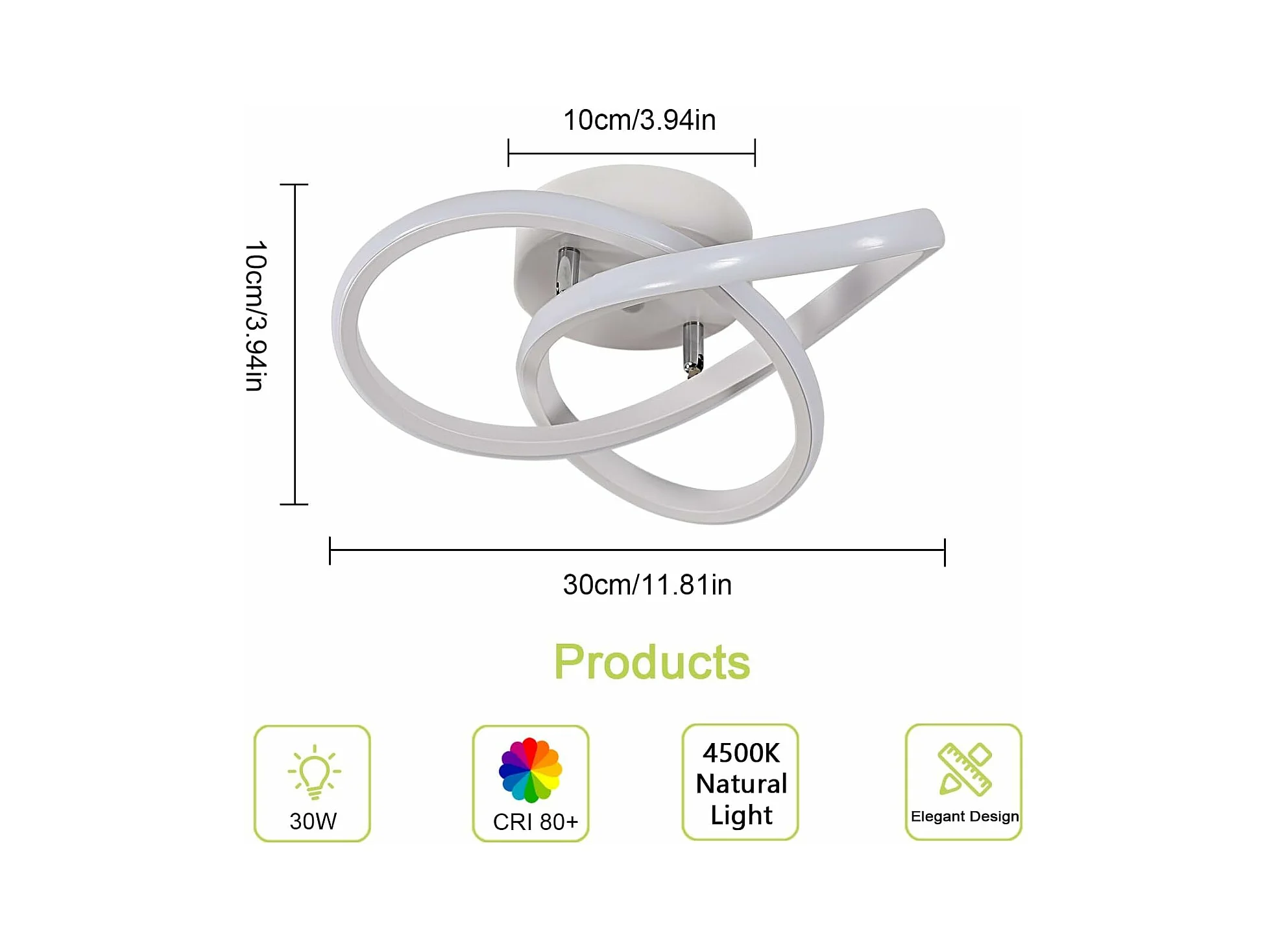 Plafonnier Led Moderne, 30W 3300LM Luminaire Plafonnier Led, Blanc Lampe de Plafond en Acrylique pour Salon, Chambre, Salle à Manger, Lumière Naturelle 4500K