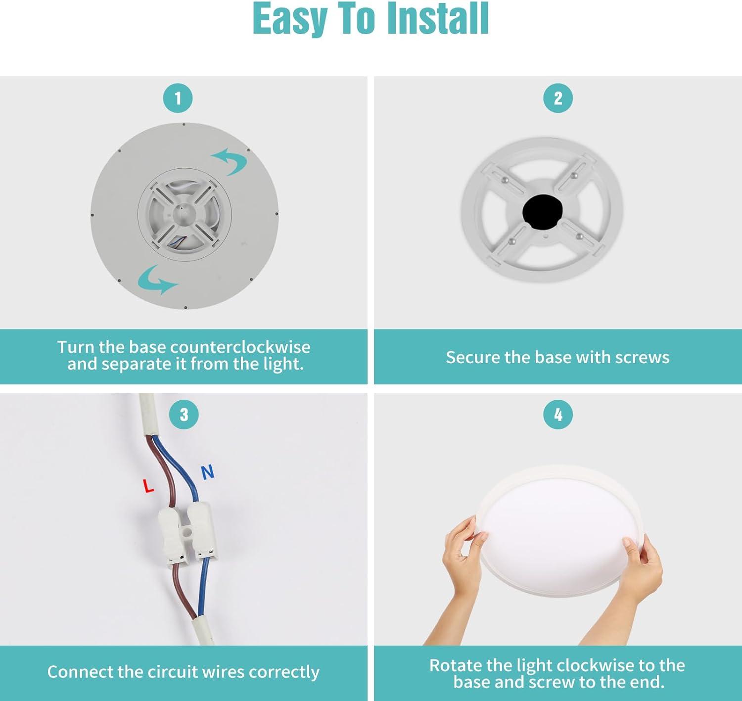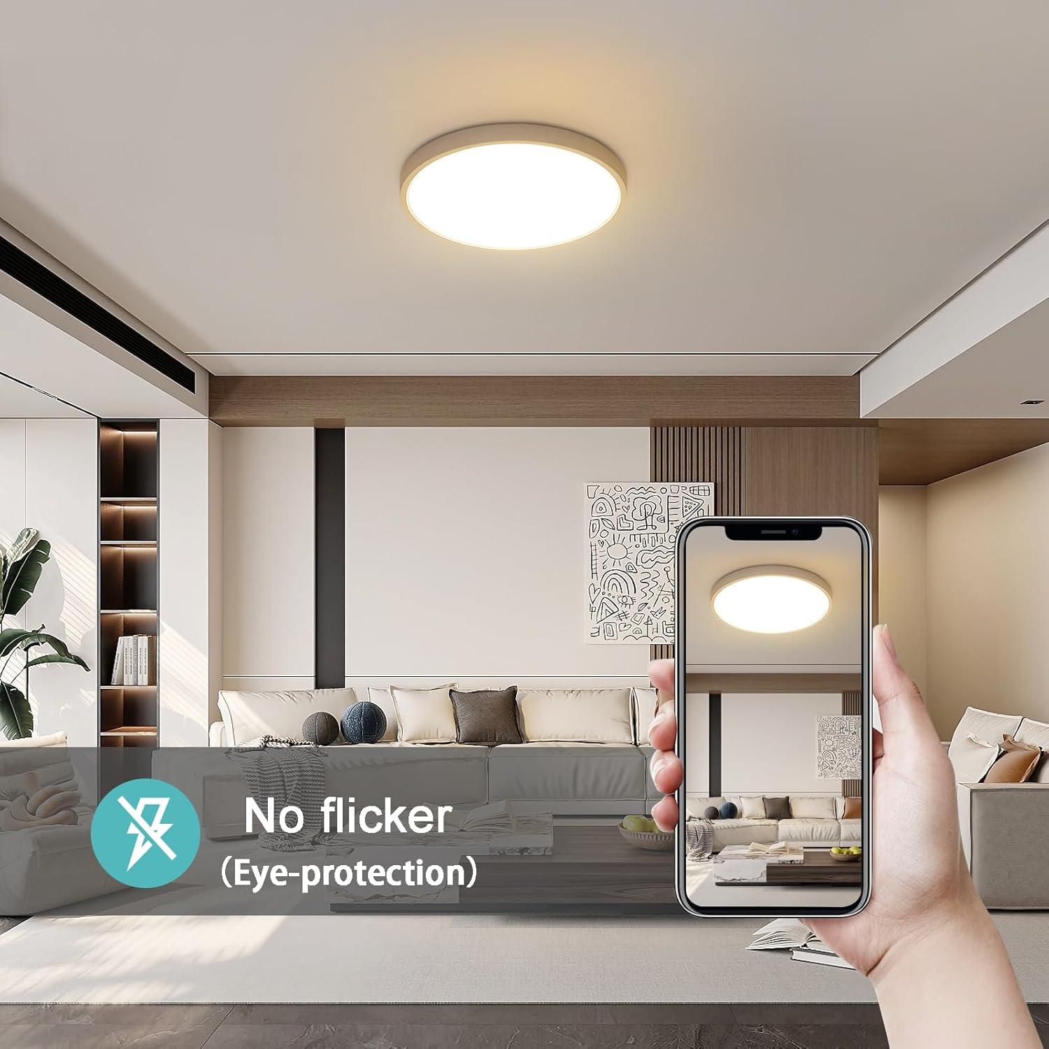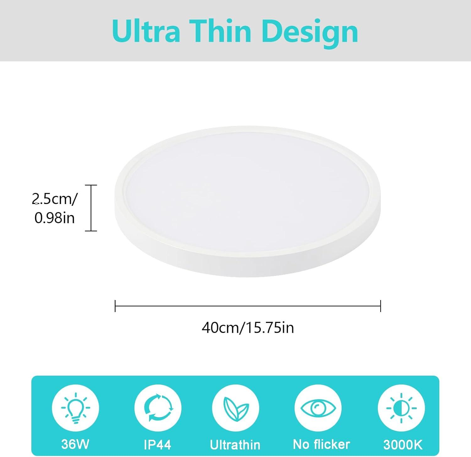 2PCS Plafonnier LED ultra-mince, Blanc Rond*40CM, 36W 3500K Lumière Blanche Chaude, PVC, Triple Protection pour Chambre Salle de Bains