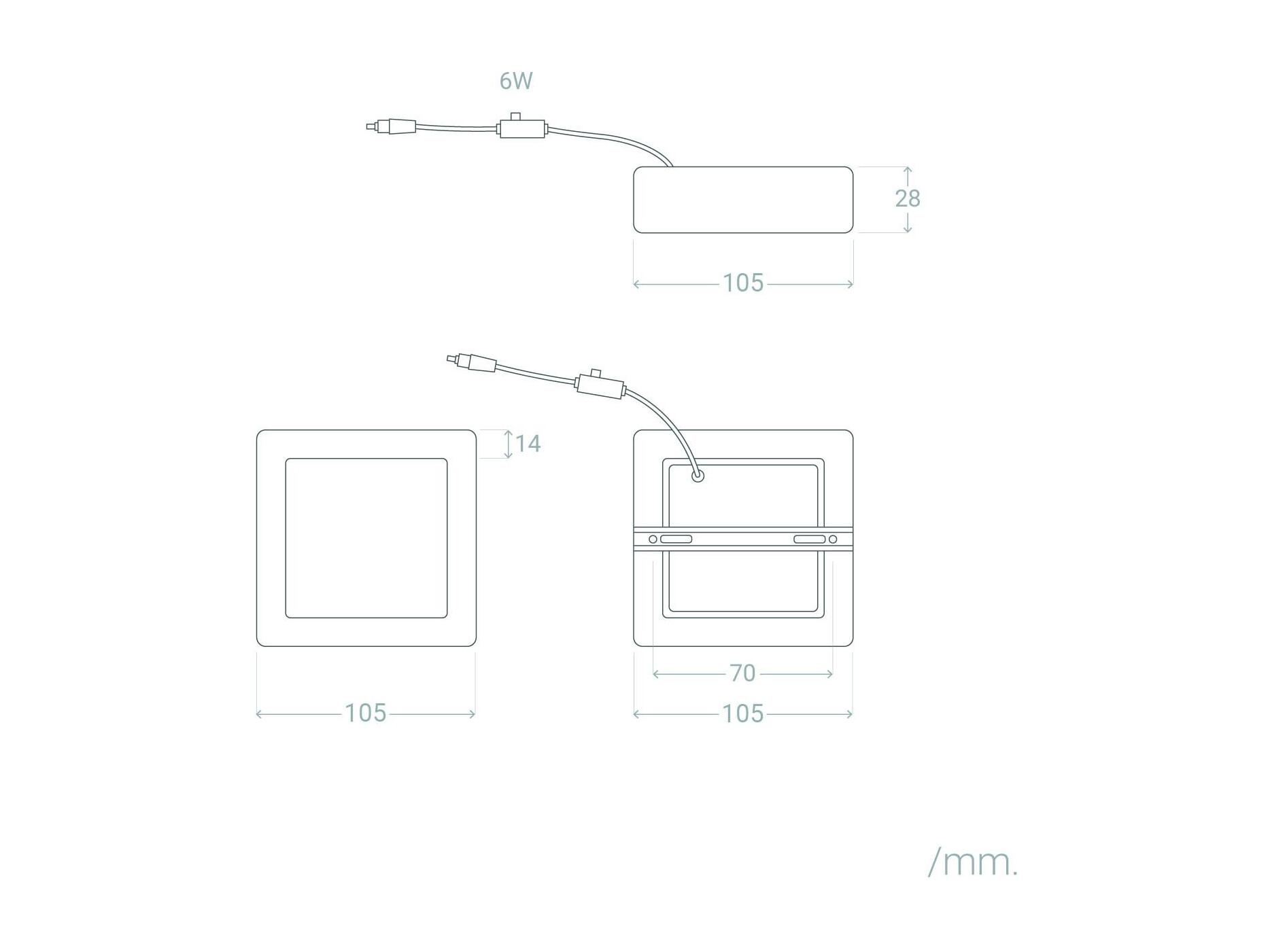 Plafonnier LED 6W Carré Aluminium 105x105 mm Slim CCT Sélectionnable Galán SwitchDimm Gris