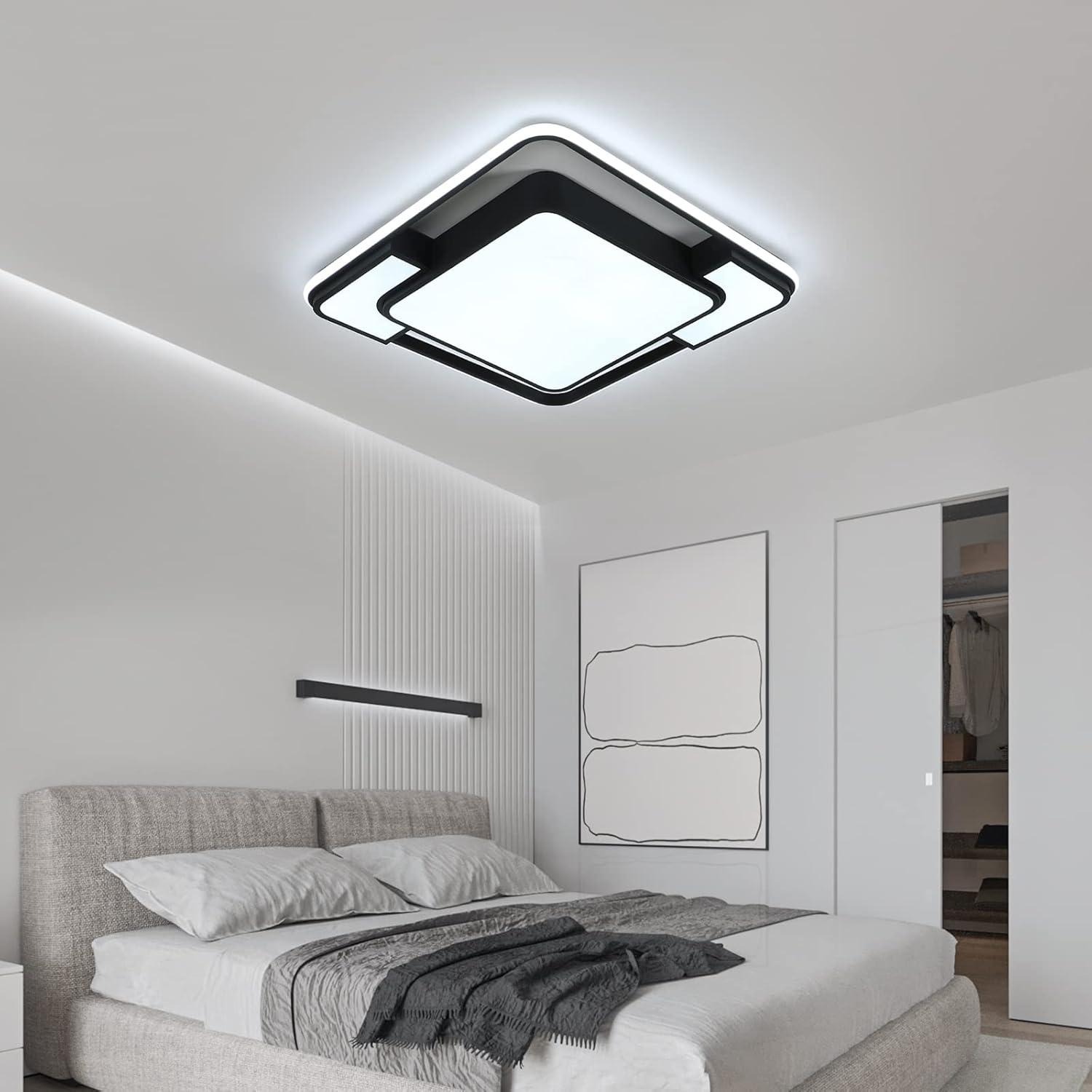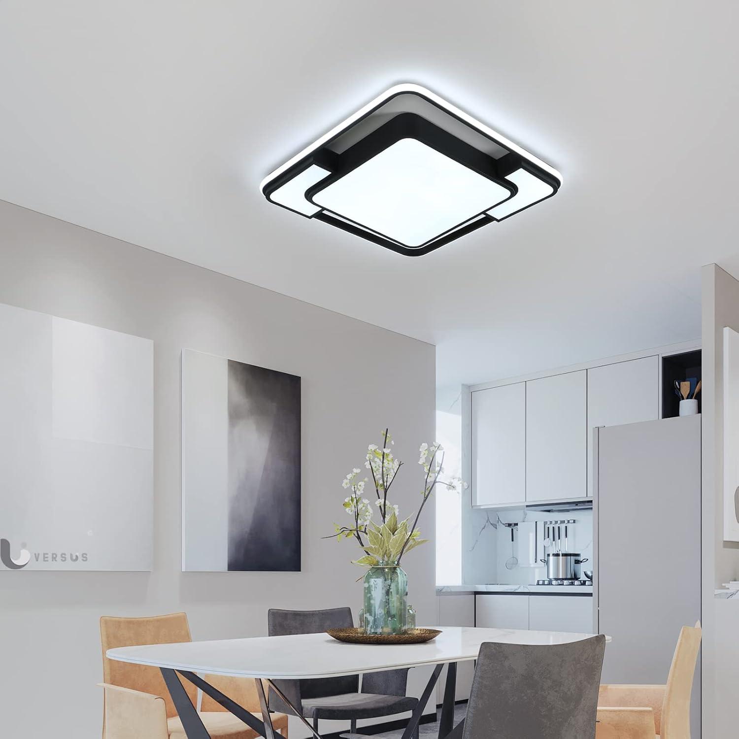 Plafonnier LED Moderne 30W 3375LM Carré Acrylique Noir Luminaire Élégant pour Salon Chambre Cuisine Couloir 30CM(Lumière Blanche Froide 6500K)