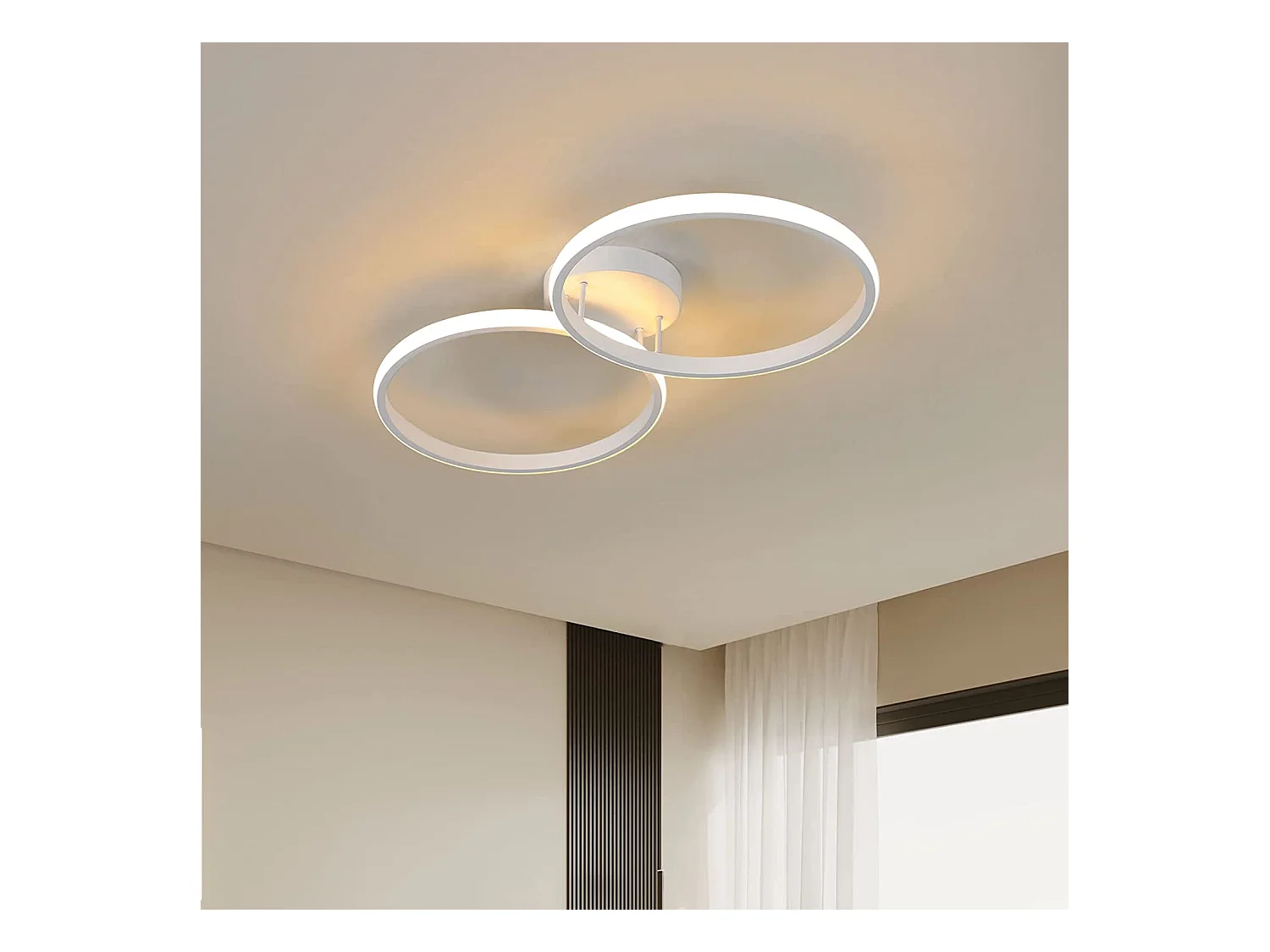 Plafonnier led moderne 36w design créatif à double anneau, blanc, 54*30*30cm,lumière chaud