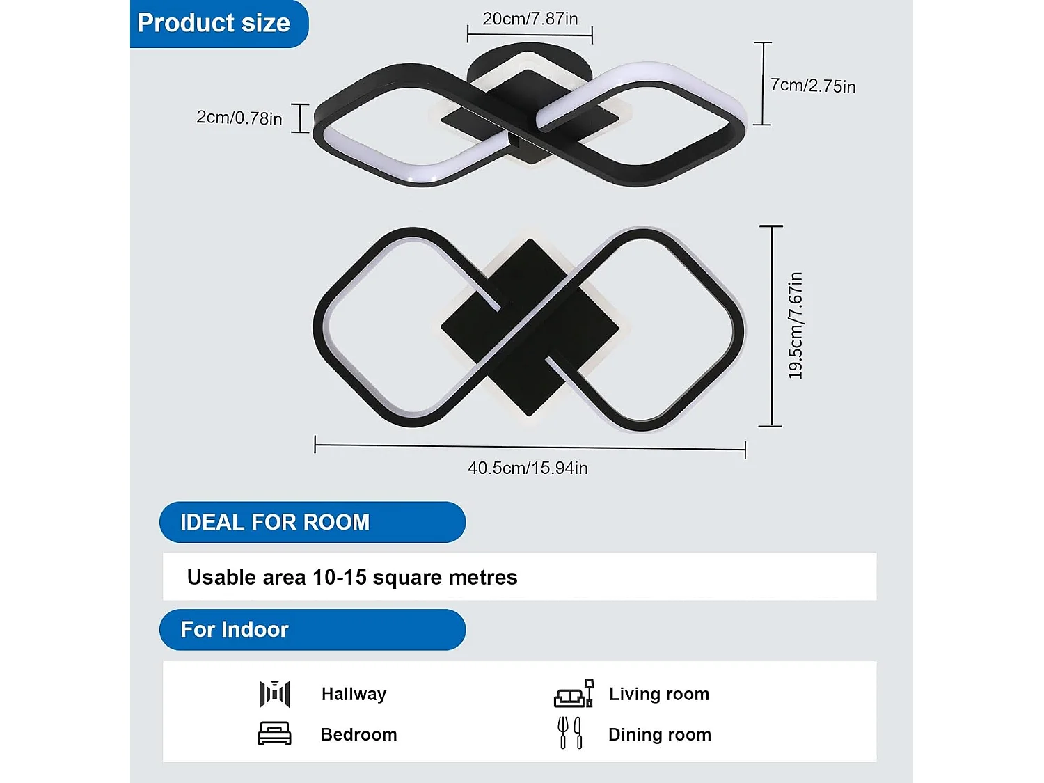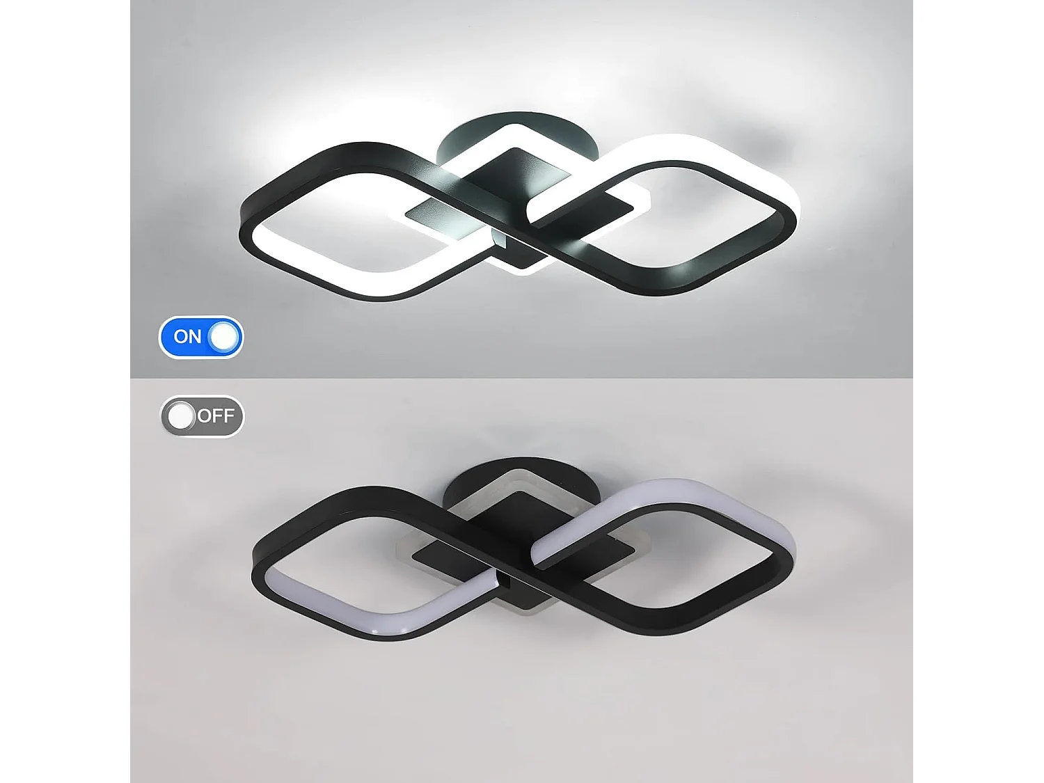 Luminaire Plafonnier LED Moderne,Plafonnier 24W 52cm,Lampe de Plafond Noir Design Courbé Lumière Chaude 3000K pour Salon,Couloir et Chambre à Coucher