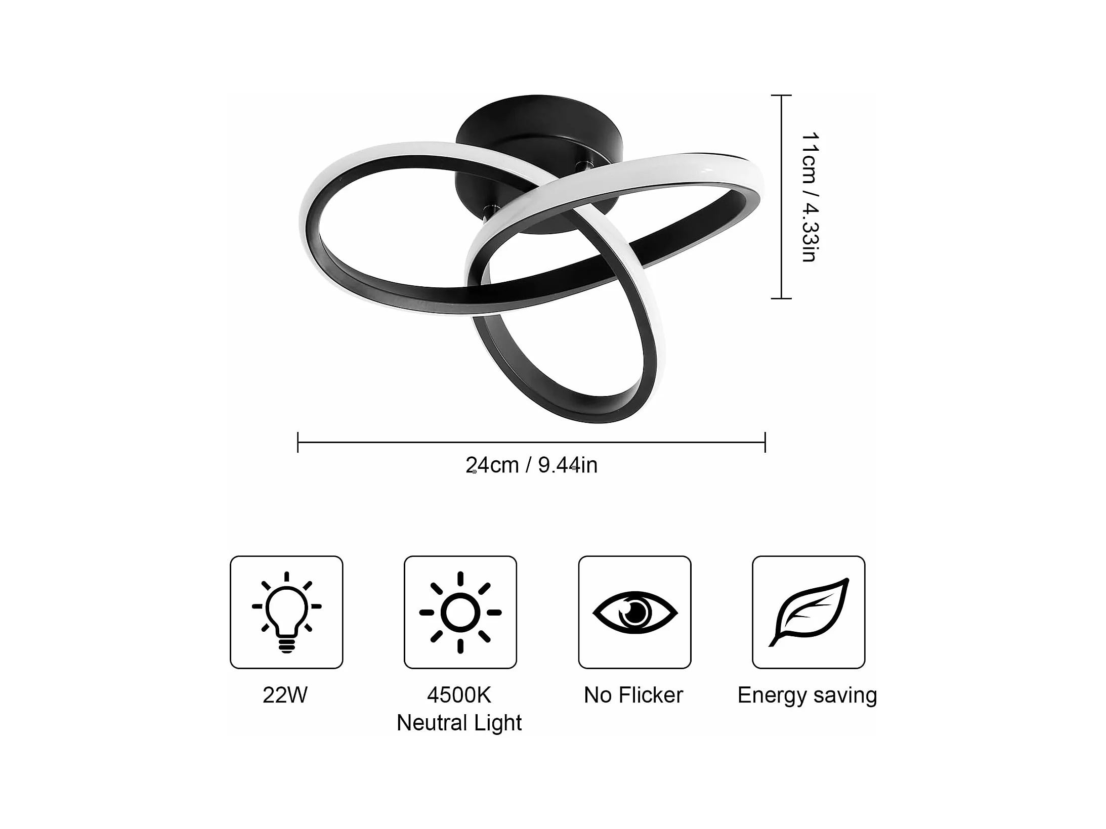 Plafonnier LED Noir en Forme de Fleur 22W 2500LM - Lumière Naturelle 4500K pour Chambre, Cuisine, Balcon