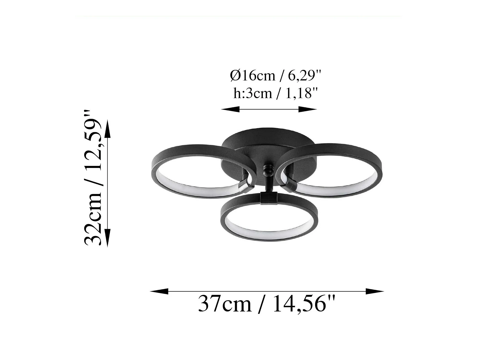 Plafonnier LED noir moderne – 3 anneaux VIESTE
