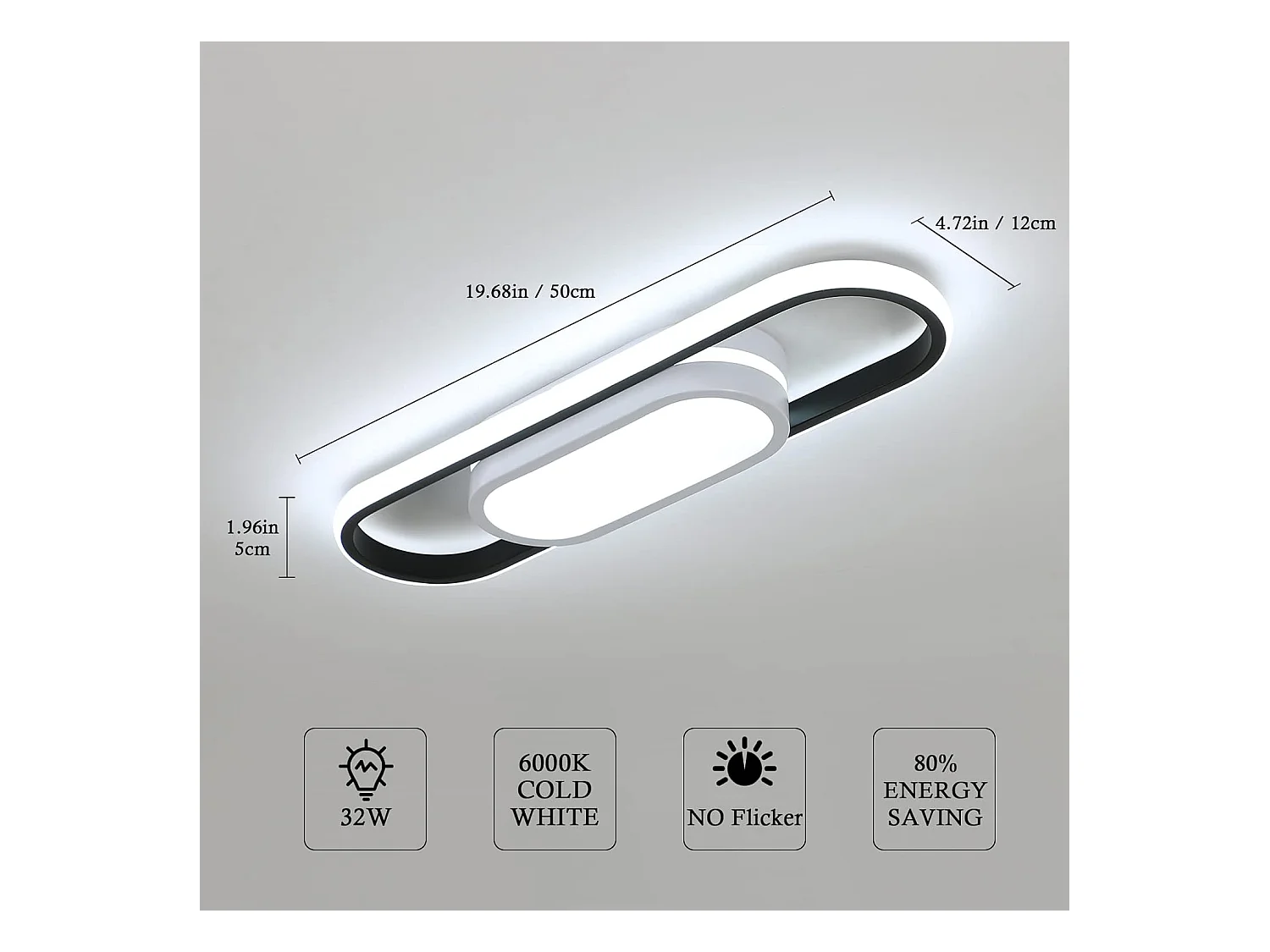 Plafonnier LED Ovale Réglable 3 Couleurs (3000K/4500K/6500K) - 30W - Aluminium Noir/Blanc - 48*12.5*5cm - 220V