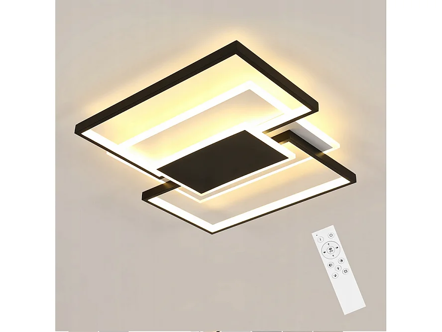 Plafonnier LED carré géométrique créatif noir + blanc avec télécommande 72W pour salon / chambre / cuisine