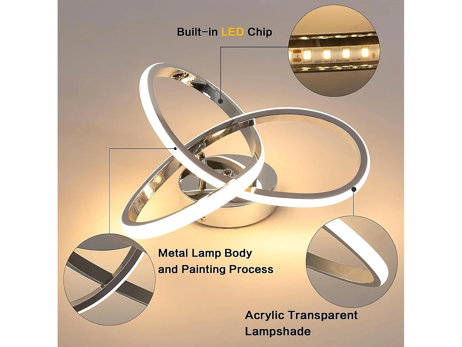 Plafonnier LED Moderne Design Créatif en Aluminium Lampe de Lustre pour Cuisine Salon Chambre Salle à Manger(Argenté 30W Lumière Blanche Chaud 3000K)