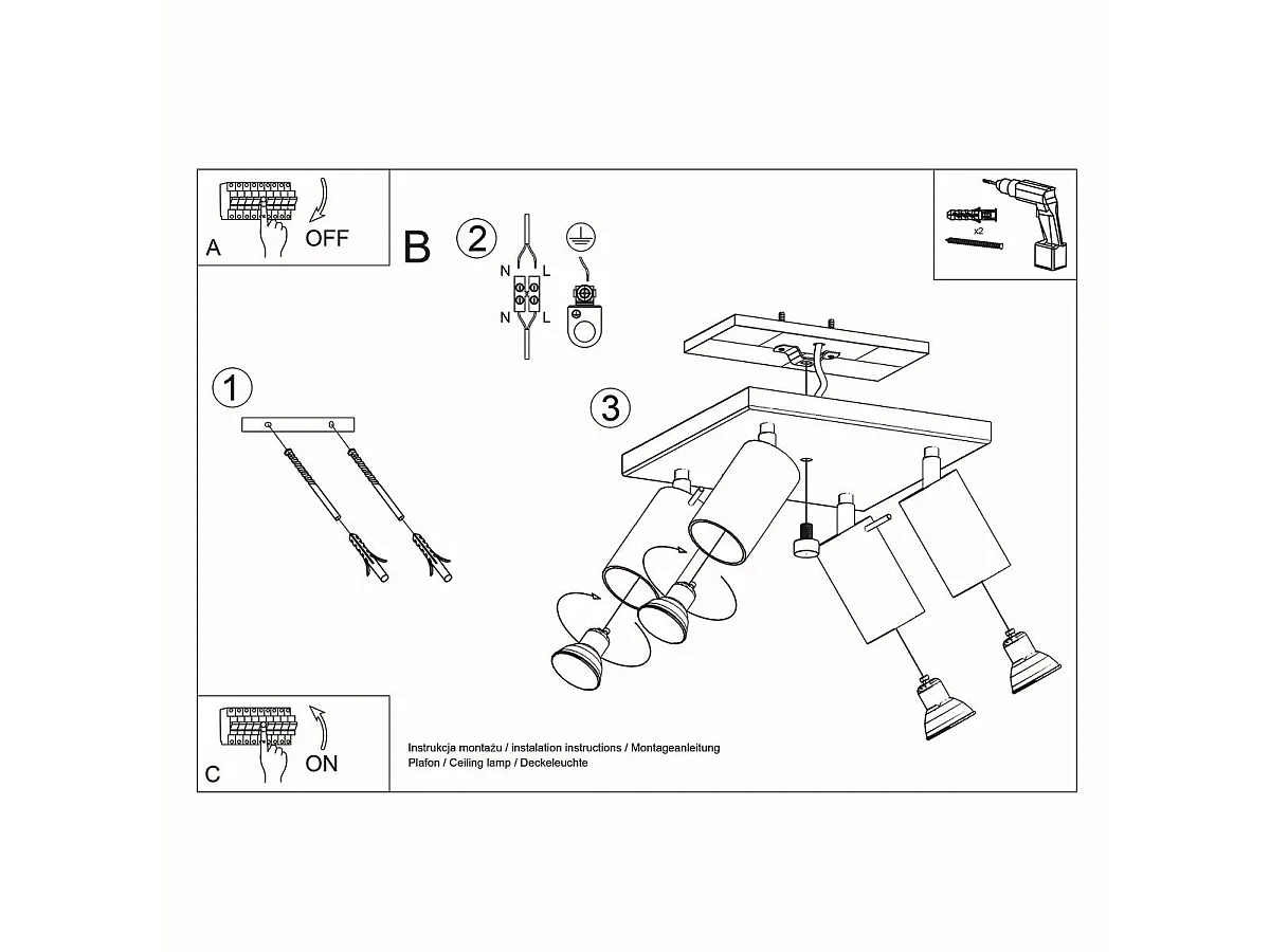 Projecteur industriel pivotant et inclinable en acier à 4 lumières - Suplux