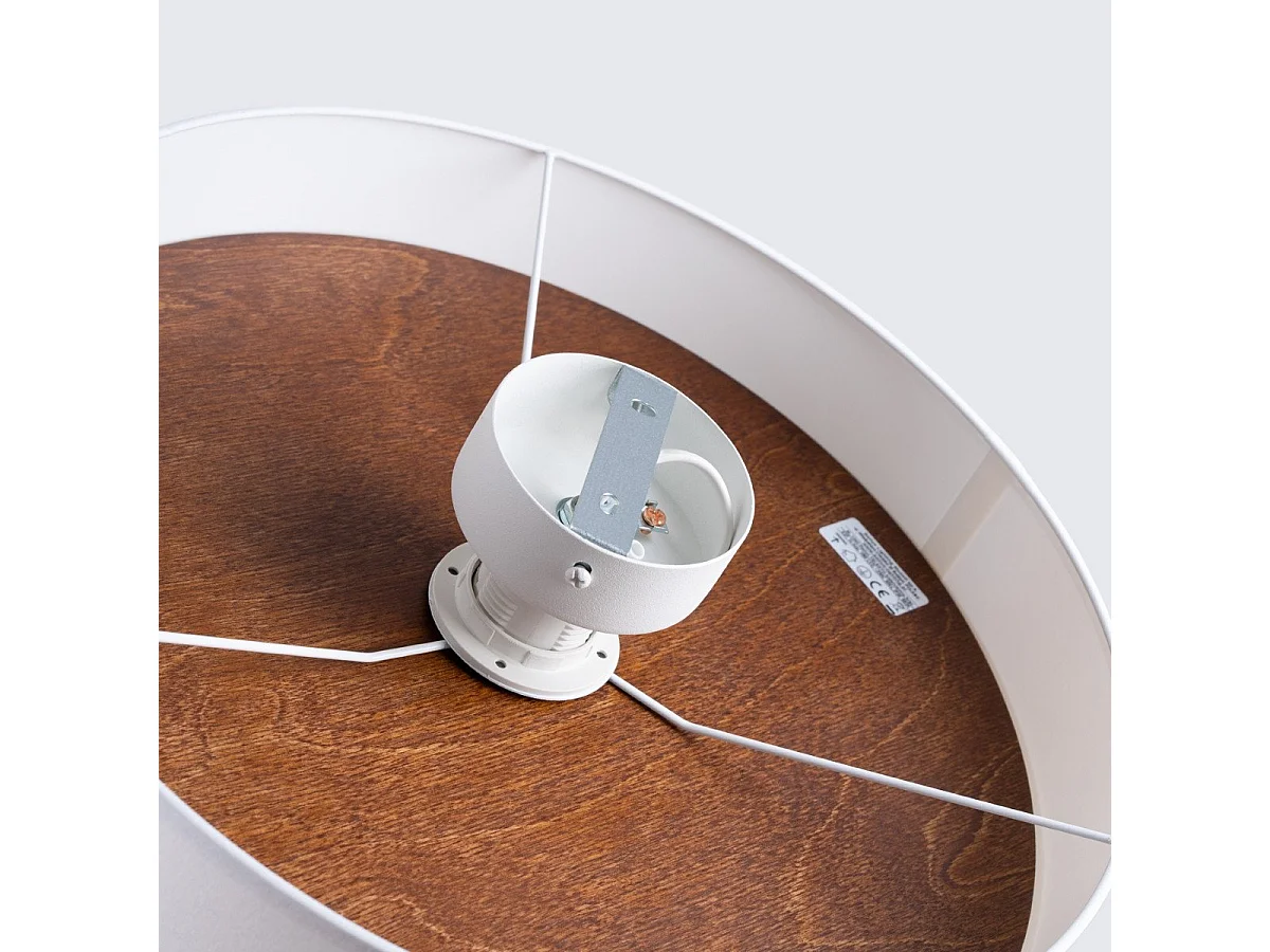 Plafonniers Straylon scandinave en tissu/bois/acier - 1 sources lumineuses 4000K - L.35 x H.20 cm - blanc/marron foncé