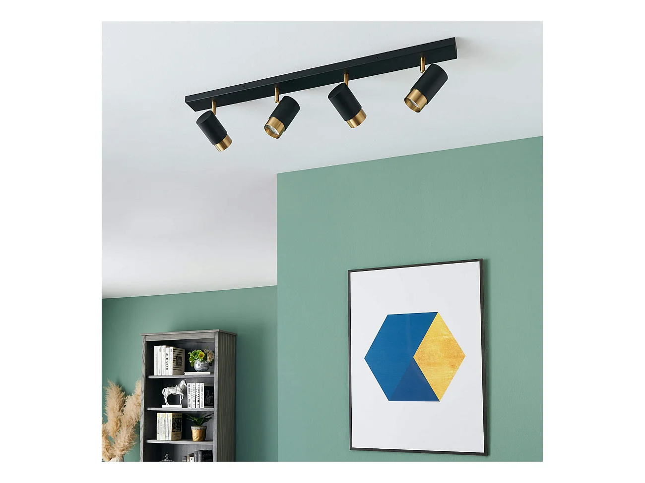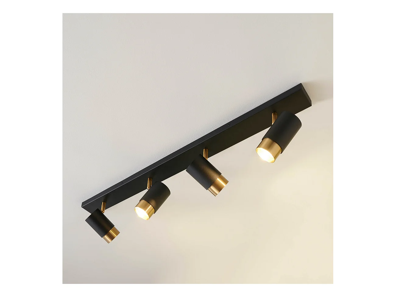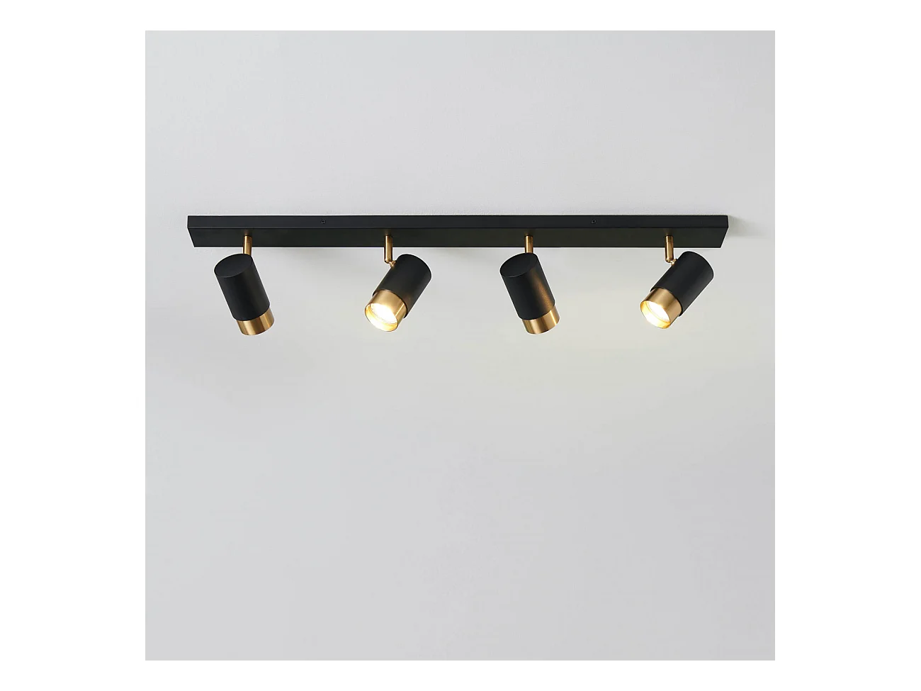 Plafonnier moderne 4 projecteurs orientables noirs et dorés - Pozzo