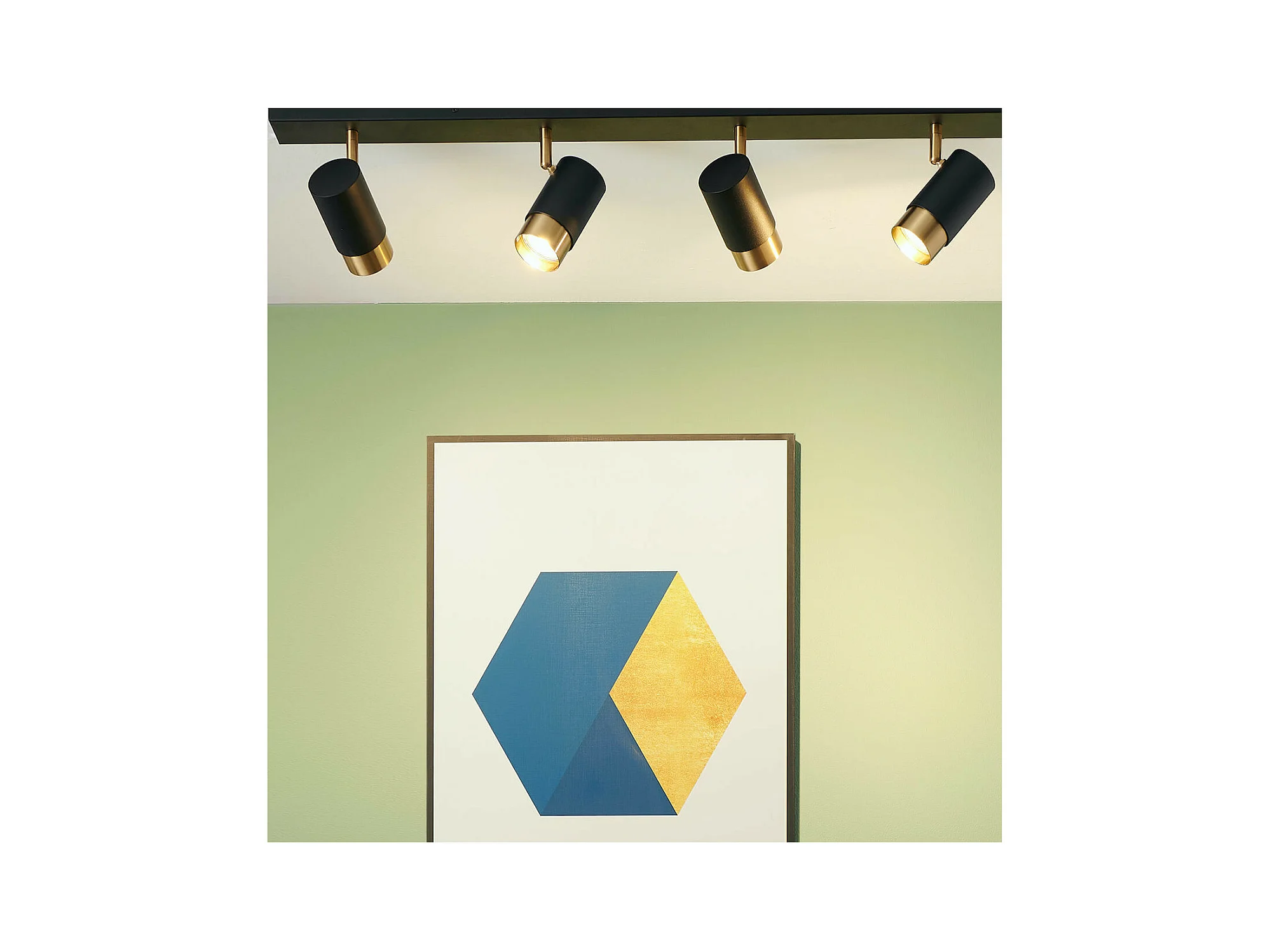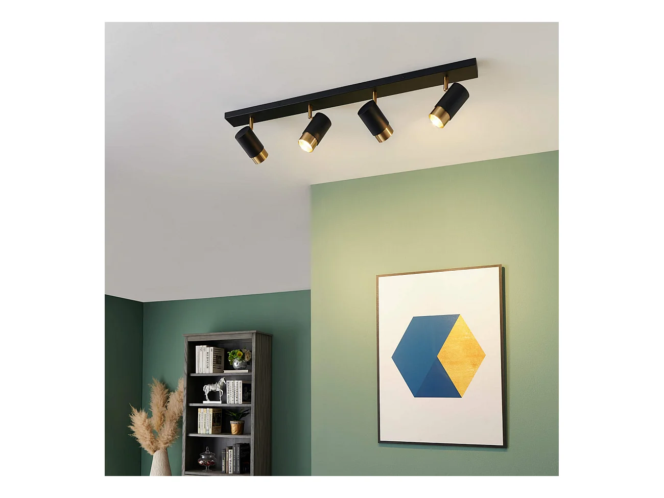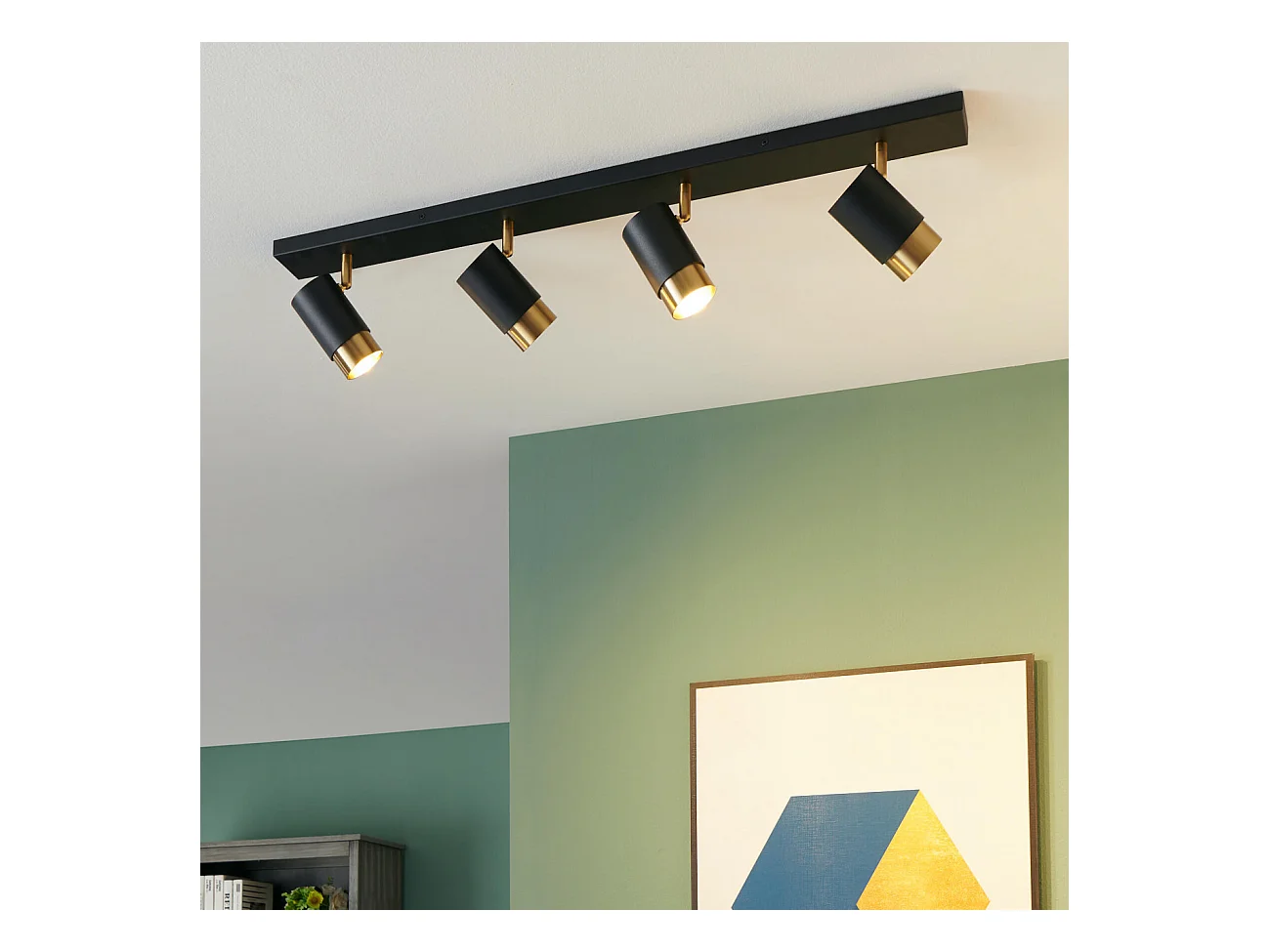 Plafonnier moderne 4 projecteurs orientables noirs et dorés - Pozzo