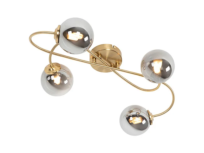Plafonnier moderne doré à 4 lumières avec verre fumé - Athènes
