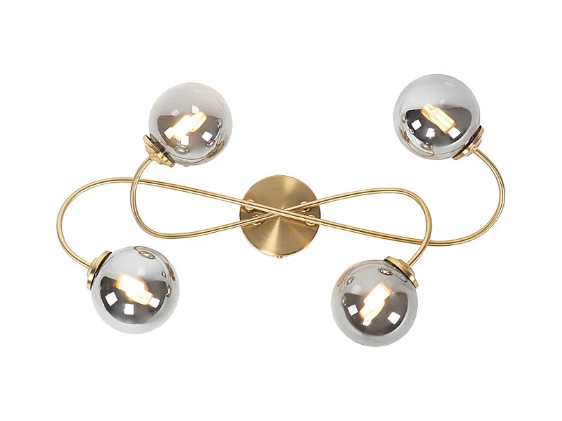 Plafonnier design laiton avec verre fumé 4 lumières - Explode