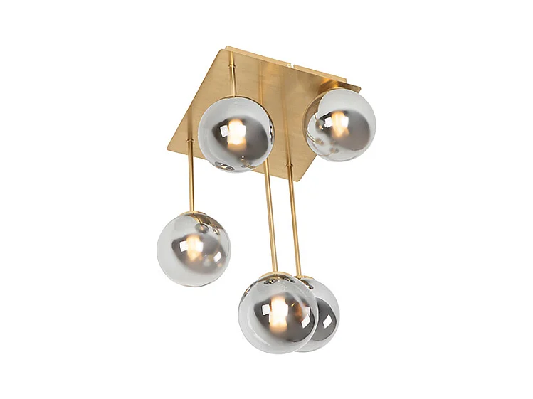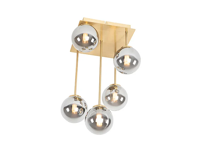 Plafonnier moderne doré à 5 lumières avec verre fumé - Athènes