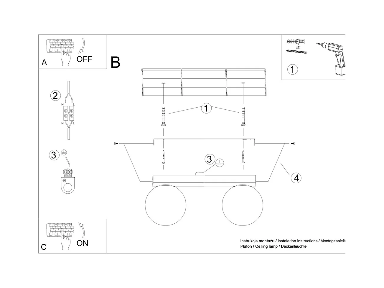 Plafonnier moderne 1088/45-BI Verre Blanc 4xG9