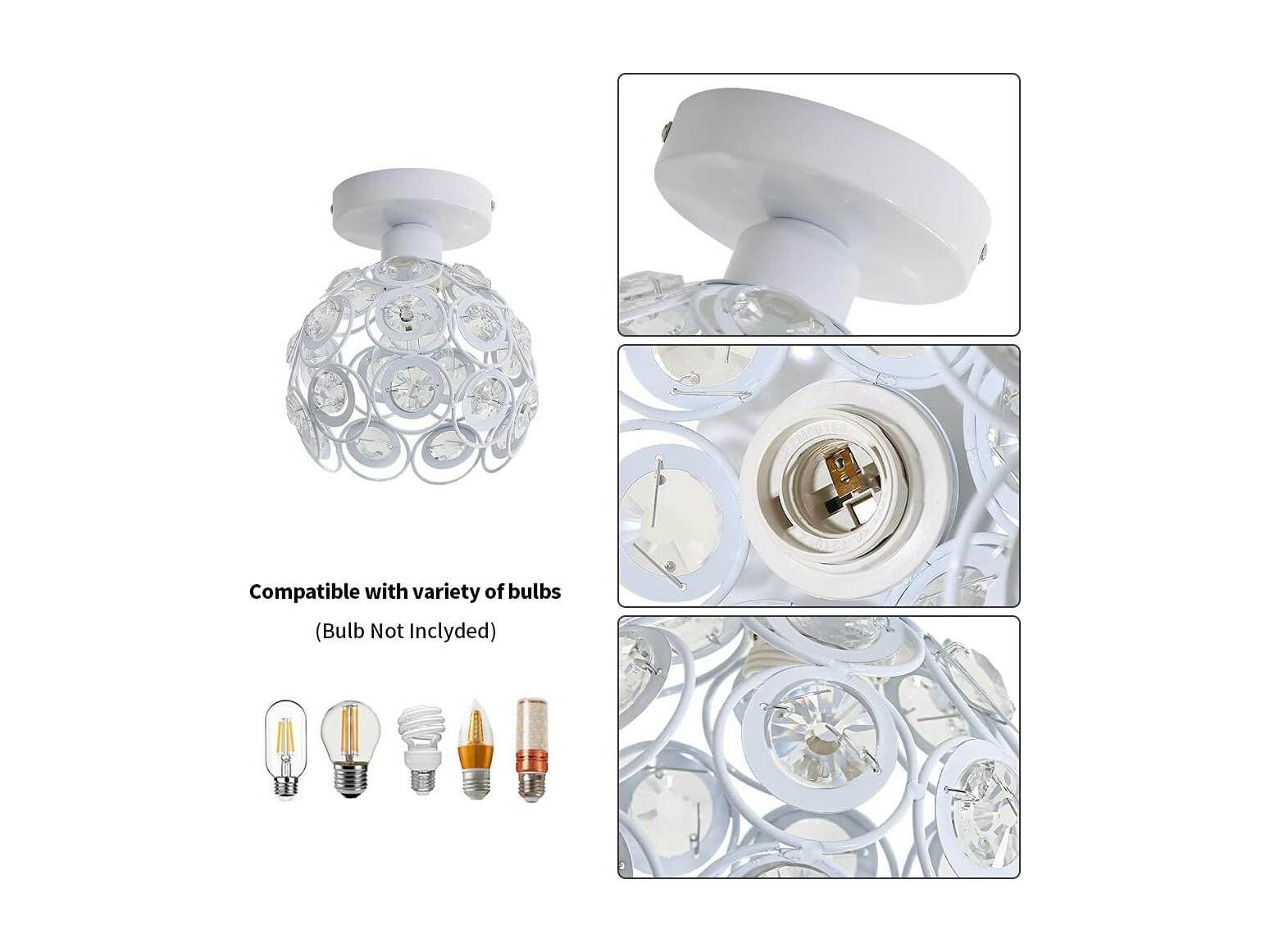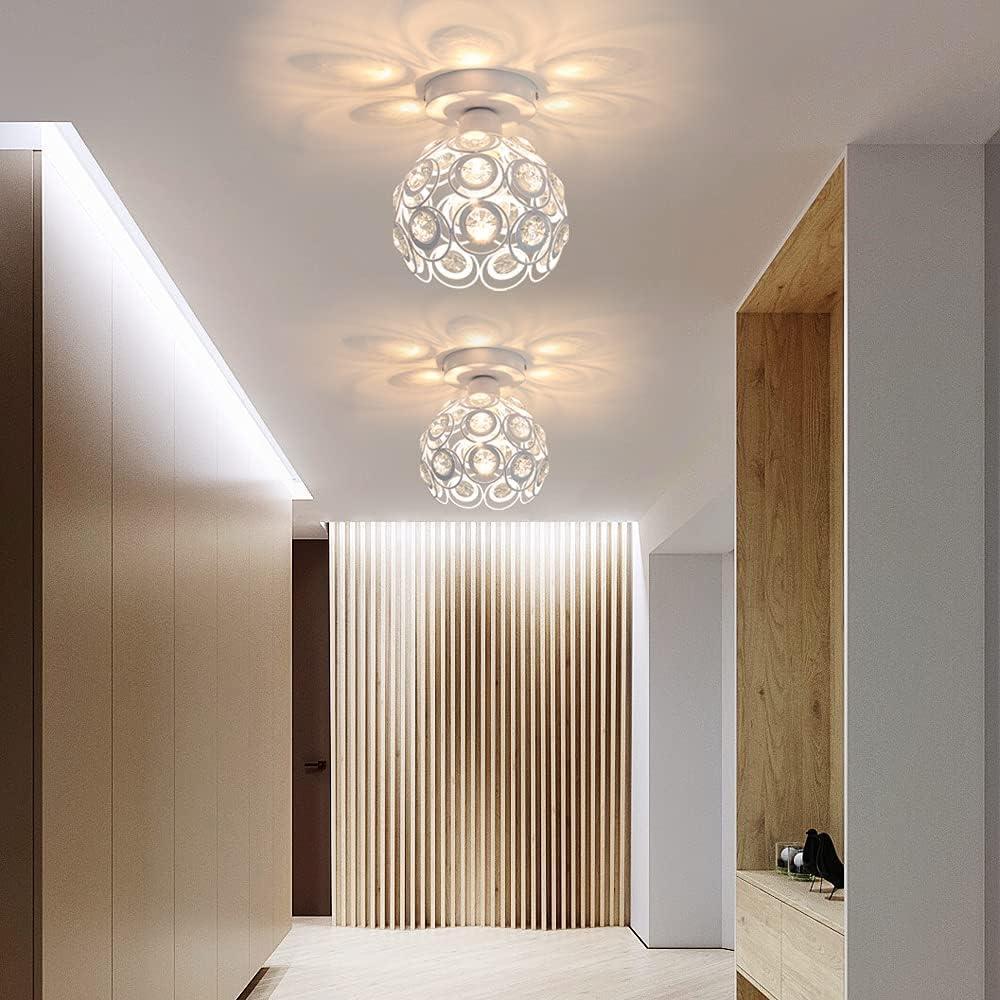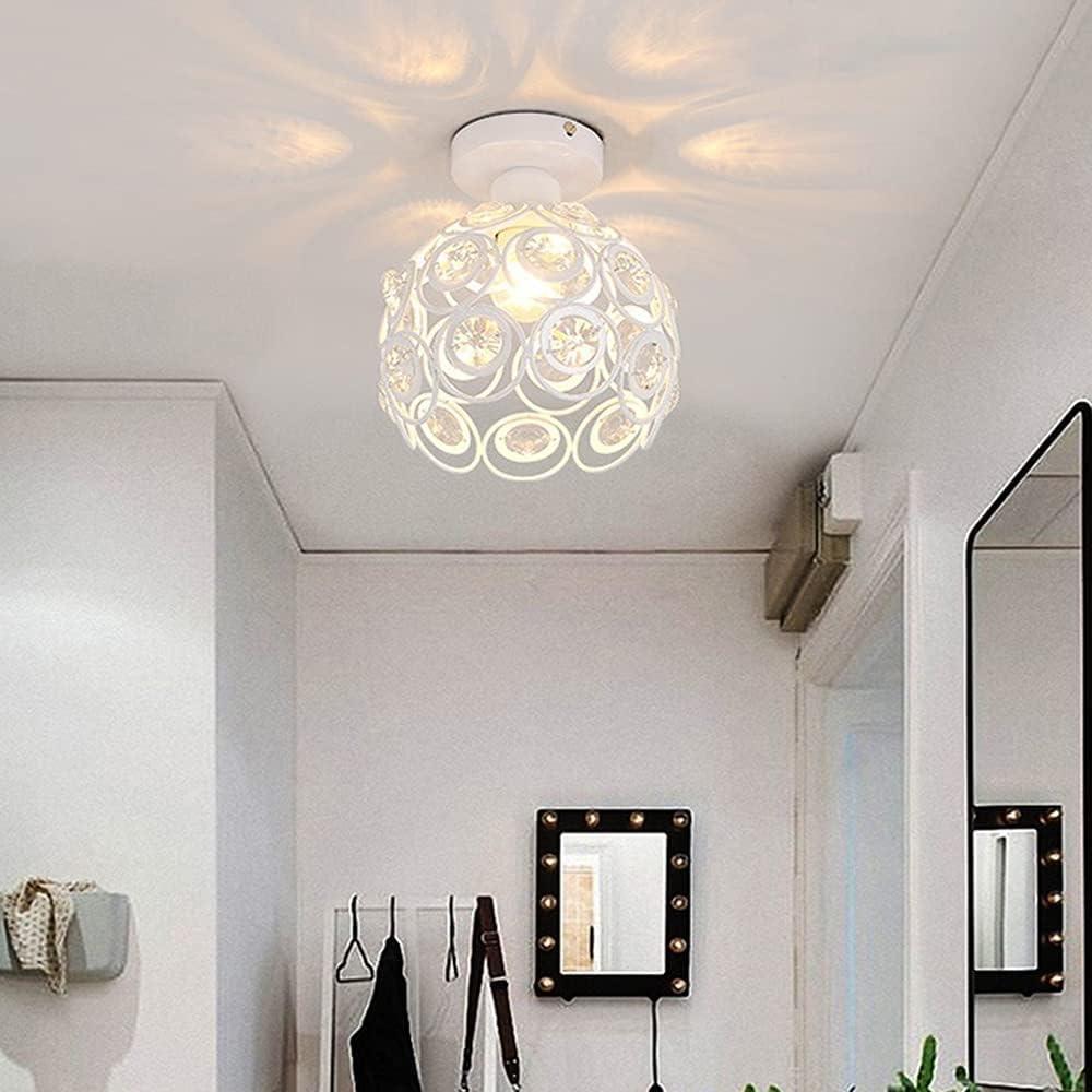 Plafonnier Moderne en Cristal Lustre Semi-encastré E27 Parfait pour l'Éclairage Intérieur Décoration de Salon Chambre Couloir (Blanc Ampoule Non Incluse)