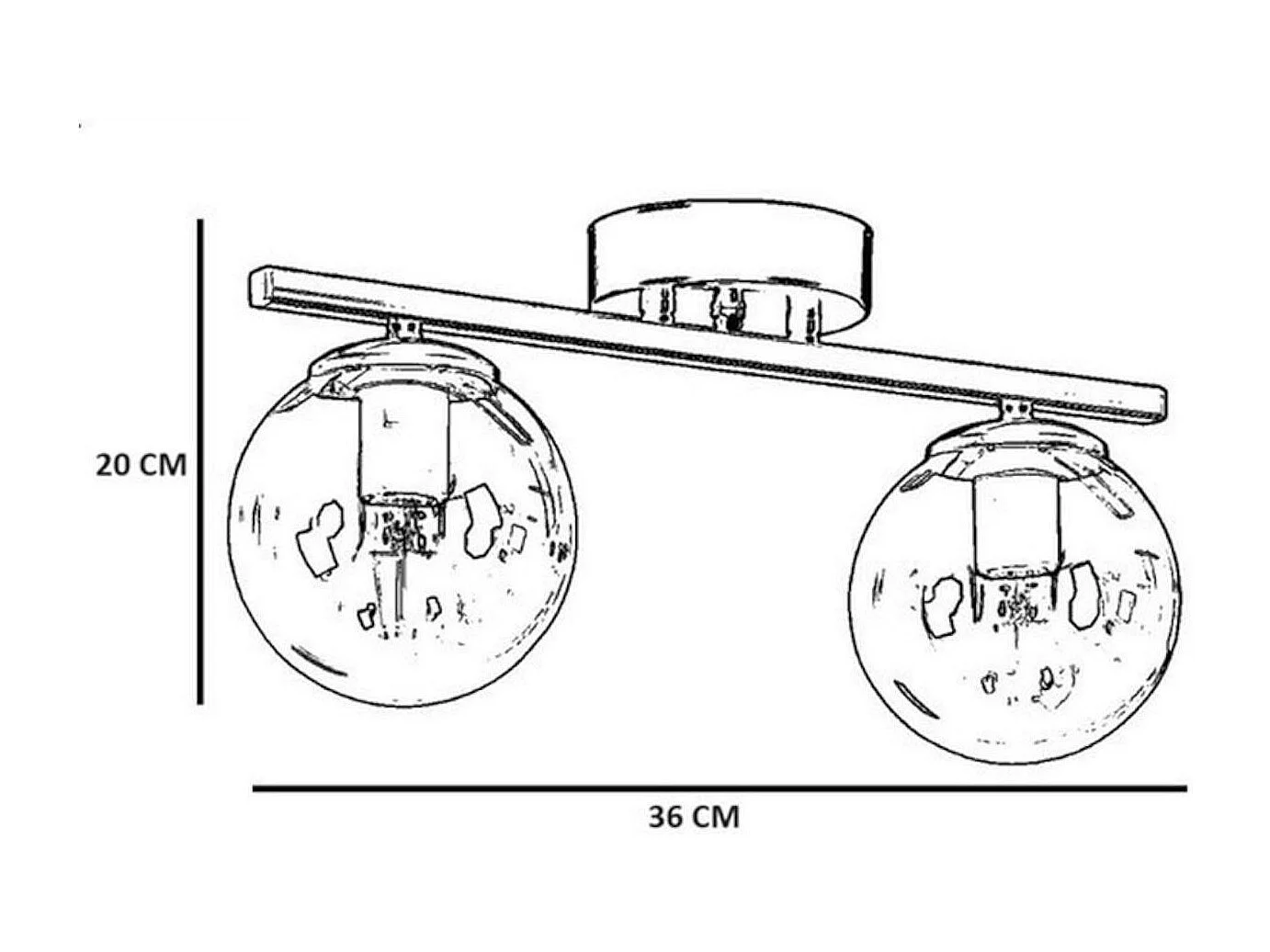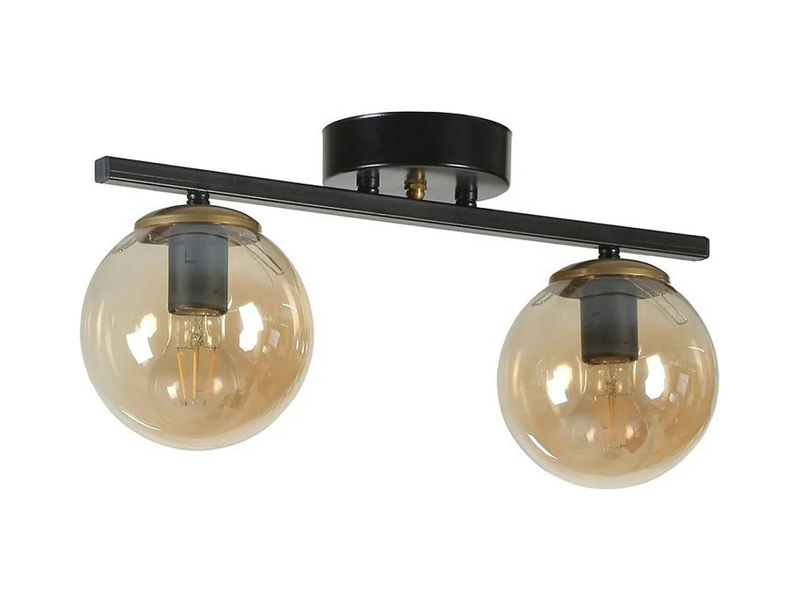 Plafonnier moderne métal noir 2 globes verre ambré SIERRE