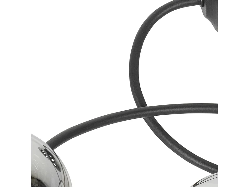 Plafonnier Mobis moderne avec barres noires irrégulières et 4 sphères en verre 4xE14